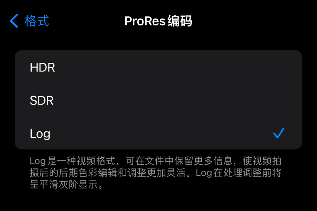 iPhone15ProMax的相机设置中可以选择Log编码模式