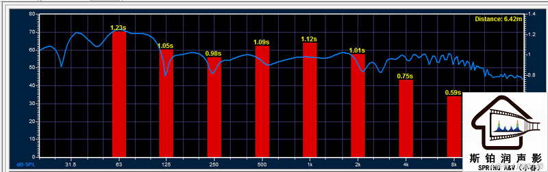 度与箱子原生相比,差别较小;空间混响时间1.1秒,混响时间严重超长,需要大量布置软装中的布沙发,厚毛地毯、厚重帘幕等,家具安装好之后声音清晰度会有提升。