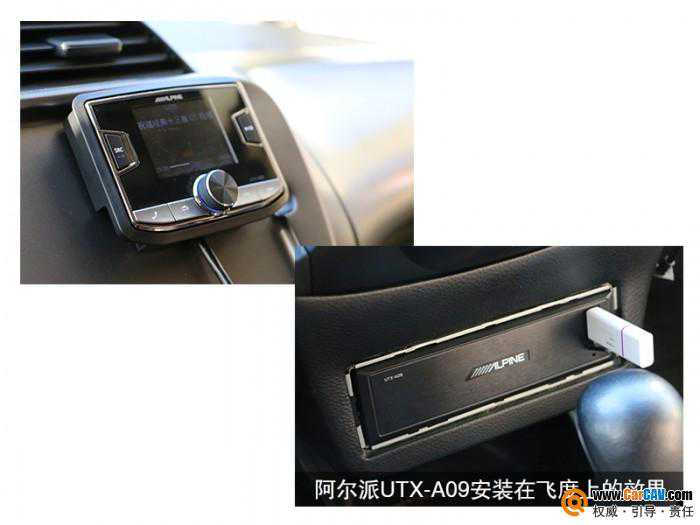 好了,言归正传。见到A09,它已经被广州极速装在一台飞度上,从产品设计来看属于阿尔派一贯的风格,主机+可视化控制面板的组合。犹记得,在CD主机流行的时代,阿尔派分离式面板设计就非常讨音改店的喜欢,因为大多数原车主机并非标准意义的单锭或双锭尺寸,除非倒模很难正常安装,分离式设计巧妙地解决了安装难题。这种设计方式沿用到了A09上,出于同样的目的,丰富了安装方式。