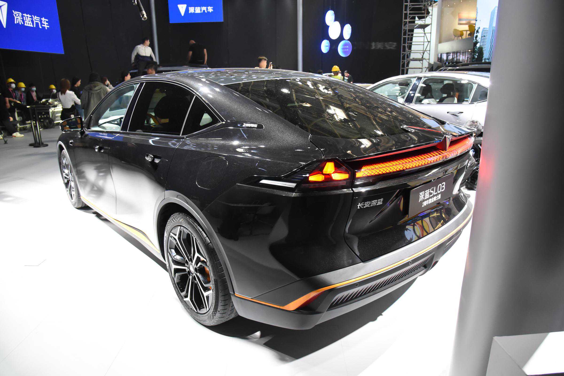 深蓝SL03两周年黑金骑士版的尾部性感,小鸭尾和贯穿式尾灯相结合,再加上小型扰流板,颇有些性能跑车的范儿,尾灯内部构造设计和车头做到了呼应。