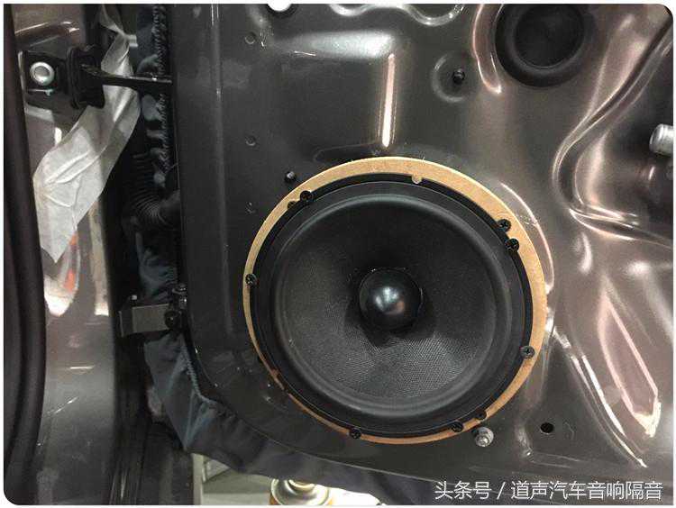 中低音喇叭安装前,先安装木垫圈,减少喇叭和门板直接接触产生共振,中低音原位安装。