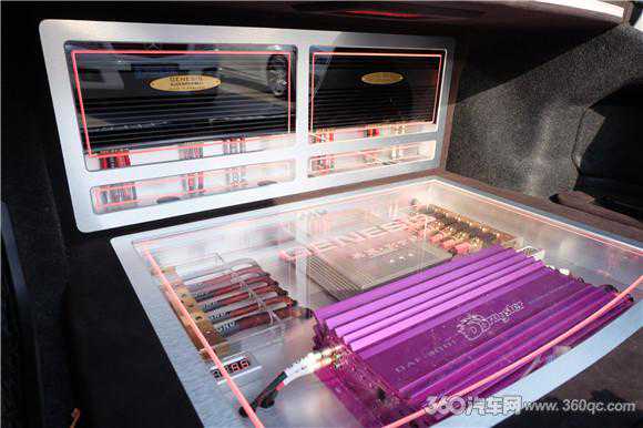 此次改装主机选用日本先锋ODR主机,以丹拿伊索塔套装喇叭作为前声场,低音选用捷力10寸超低音喇叭,负责推动它的是一台火鸟3001超低音功放。行李箱的位置还内藏了一台创世纪DM功放和两台创世纪DMX功放,负责推动前声场丹拿单元。