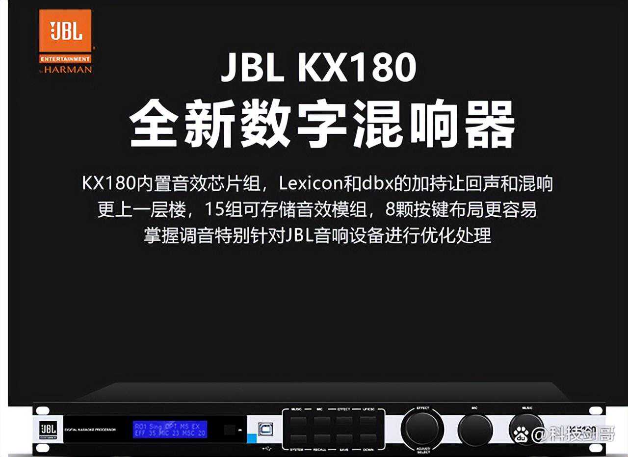 JBL全新数字混响器采用防啸叫处理器与强劲数字处理技术,让数字混响器的可调性和细节处理功能都大大提升。采用内置音效芯片组,Lexicon和dbx的加持让回声和混响更上一层楼,15组可储存音效模组,8颗按键布局更容易调音,掌握针对JBL音响设备进行优化处理。输入类型采用RCA非平衡(左右通道),动态范围大于100,音频输出阻抗为115Ω,模/数信号转换为12dB/24dB(0Hz-303Hz),性能十分稳定。