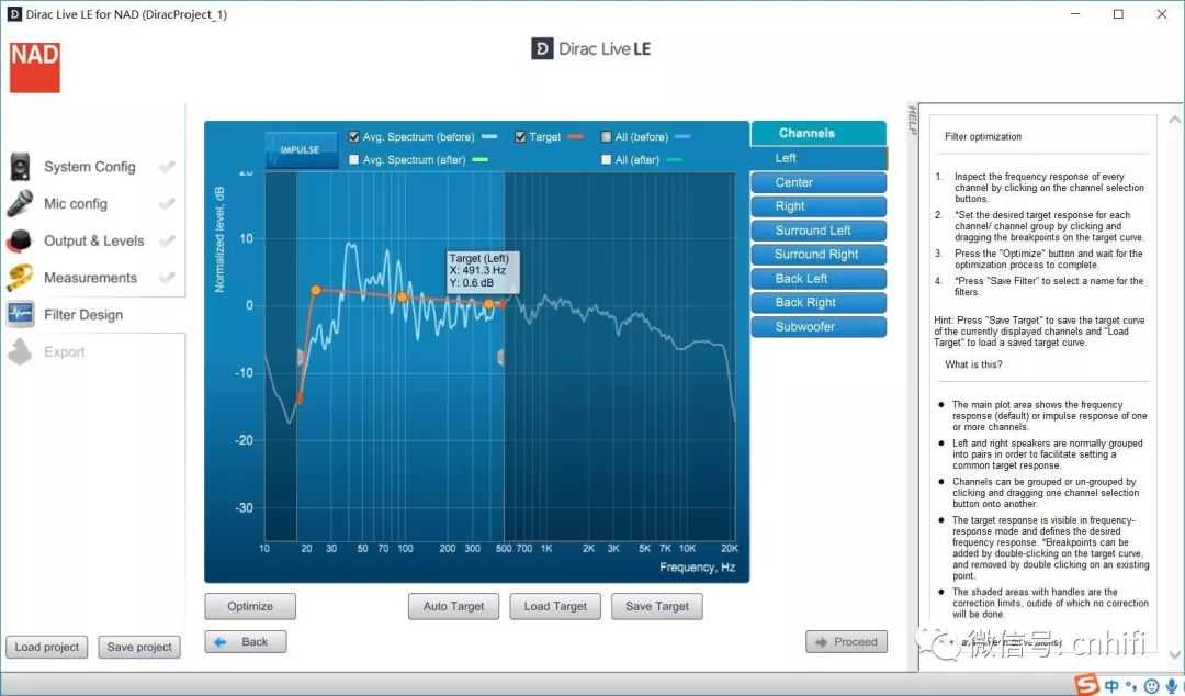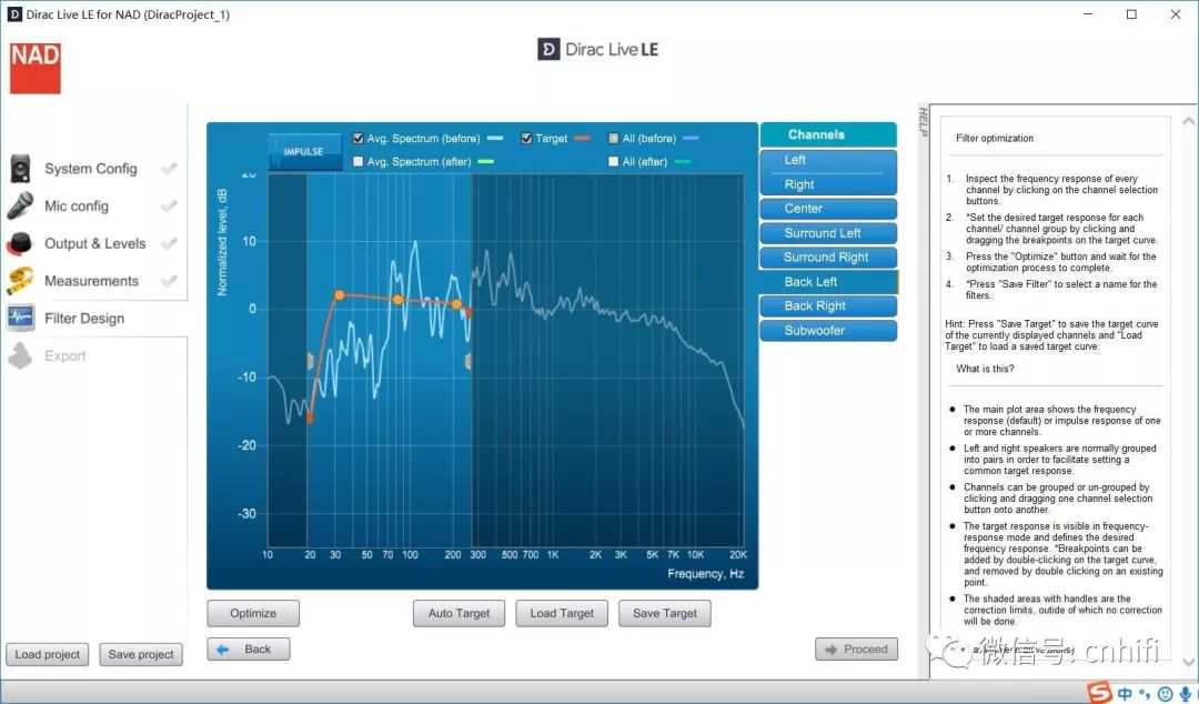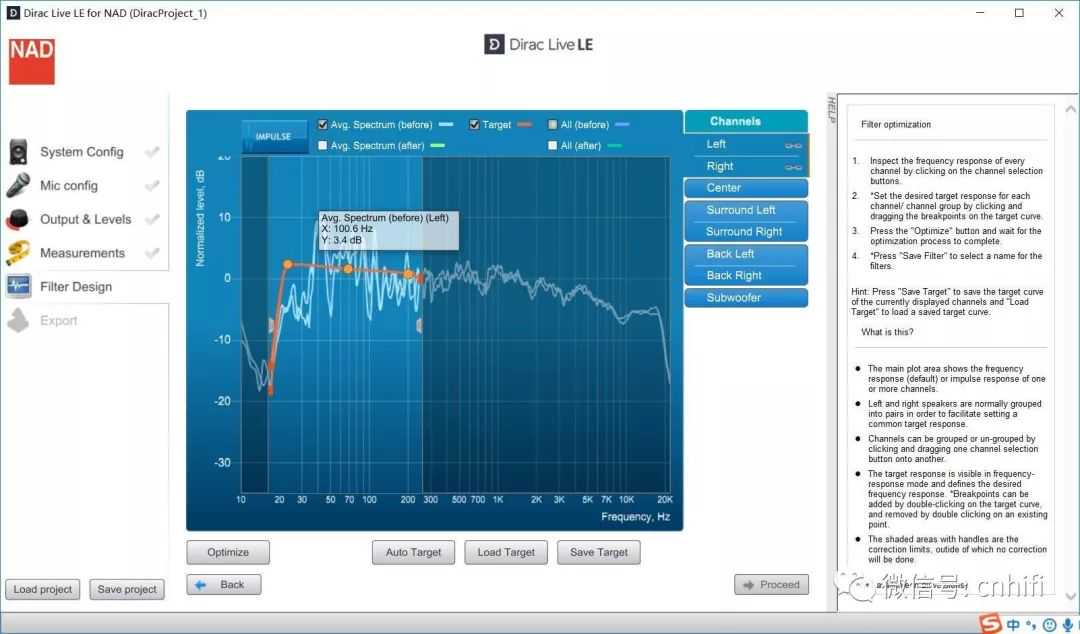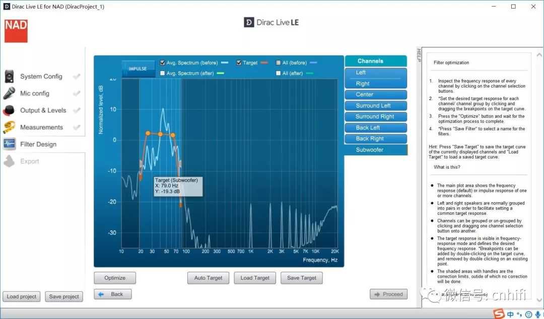 可以根据第三方仪器的辅佐,在仪器拾得曲线之后,在同期的DiracLive界面中进行相对应的削峰调整,