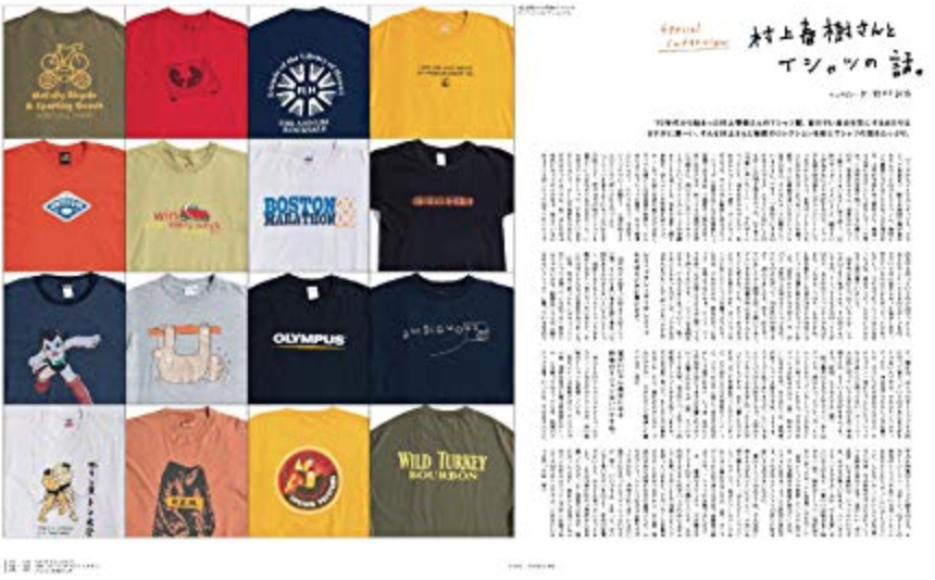 村上春树的T恤衫就在不久前,与村上广播几乎同一时间,村上春树还与杂志合作展开了一个更有趣的“企划”:8月份起,村上春树会在面向男性的时尚月刊《POPEYE》杂志上开设一个叫“村上T——我喜欢的T恤衫”的栏目,每次两页篇幅,用一篇文字搭配图片,与读者分享自己珍藏的T恤衫和与之相关的故事。村上一直都是一个不讲究穿的人,在他的随笔里,也说起过因为穿着过于朴素而被店家轻视的事情。但是作为摇滚乐和美国流行文化的爱好者,喜欢购买和收藏有意思的T恤,简直是再符合村上“人设”不过的事情。他所讲的有关T恤的故事,想必也会跟音乐、旅行和文学联系在一起,成为只有村上才能讲出的故事吧。