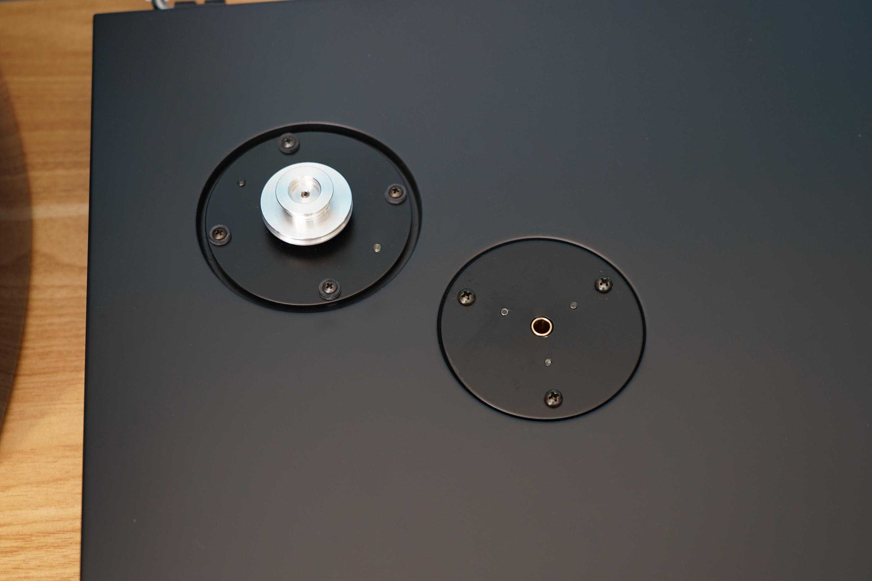 但其又是一台高度部件分离设计的唱片机,高精度平衡铝制主转盘、钻石切割的副转盘都是拼装式设计。