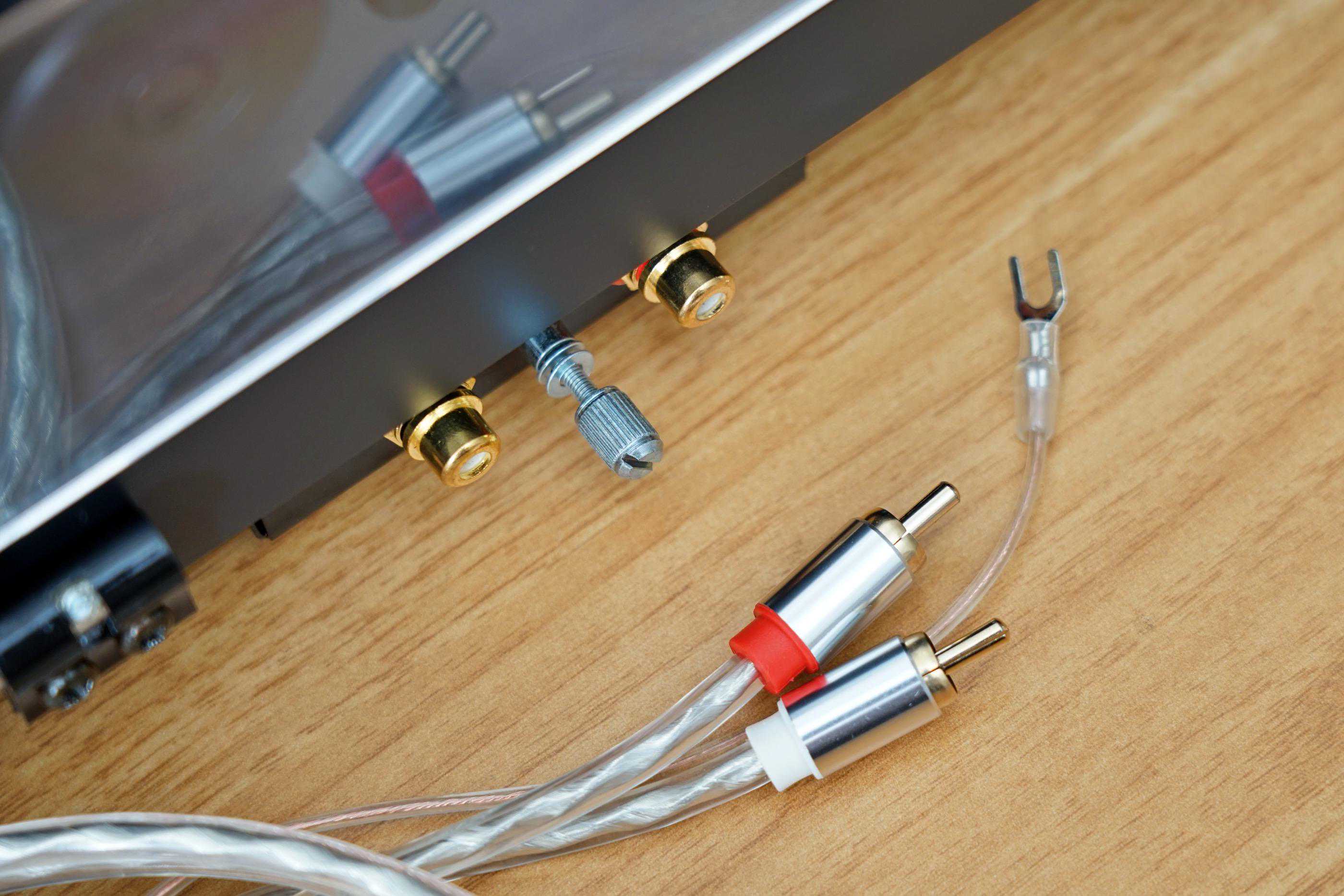 从输出来看,宝碟DebutProS本身内部不自带唱头放大器,属于唱头原始模拟信号输出,输出端口为左右声道分离的RCA镀金接口,并有接地线方便连接前级功放降低底噪。
