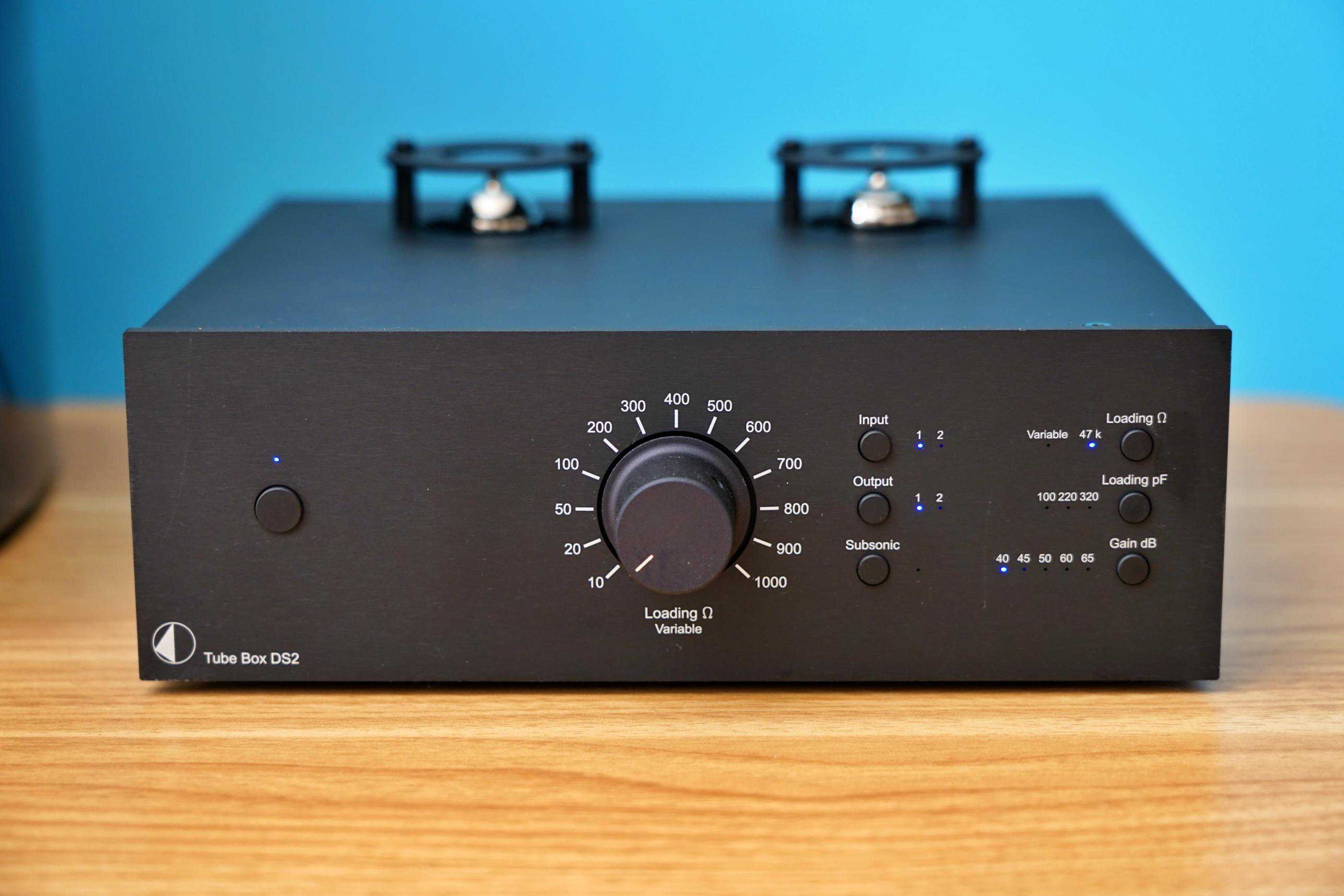 为了更好保留黑胶的原汁原味,我搭载了官方推荐的原装进口的宝碟TubeBoxDS2唱头放大器。这个前级胆机功放采用2进2出双路设计,搭载了两个俄罗斯金狮的ECC83双三极管高增益音频放大器电子管用来放大信号。并支持适合MC玩家的10~1000Ω阻抗调节、MM需要的47kΩ固定阻抗,电容匹配三档可调,且增益调节有45-45-50-55-60dB五档可选,可以满足各种唱头玩家对于个性化设置的需要。