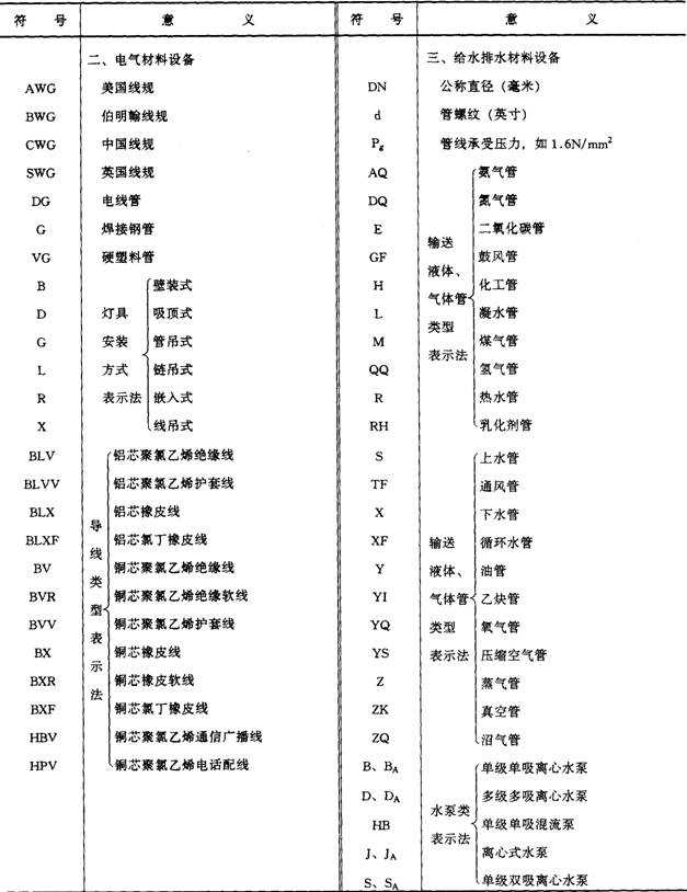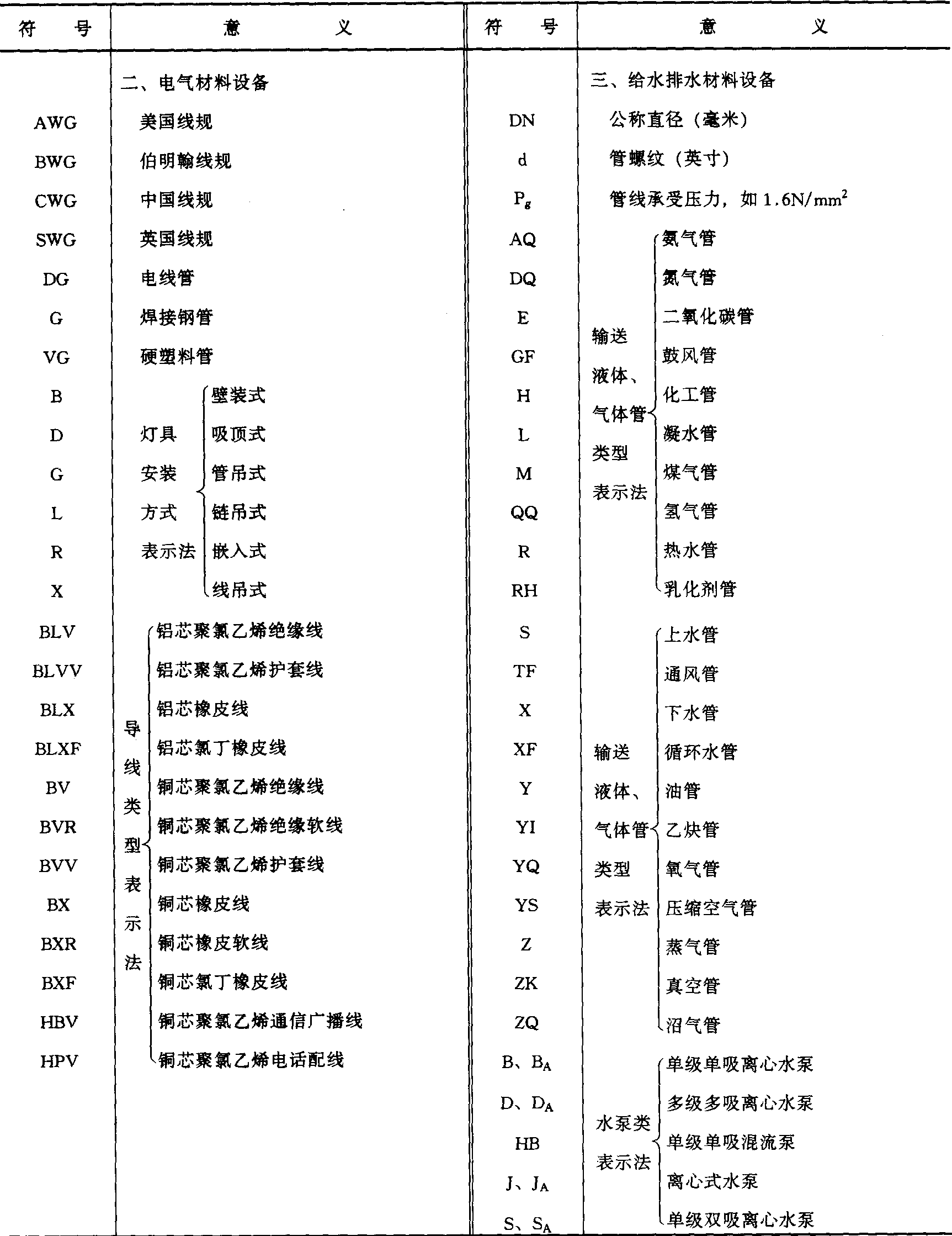 注:1.预制钢筋混凝土构件、现浇钢筋混凝土构件、钢构件和木构件,一般可直接采用本附录中的构件代号。在绘图中,当需要区别上述构件的材料种类时,可在构件代号前加注材料代号,并在图纸中加以说明。