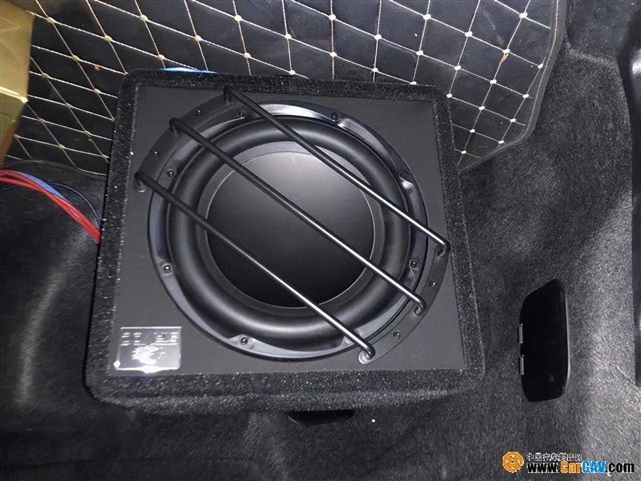声场喇叭安装完还不够,专业的改装师还加装了一台美国JBLDA406处理器,可以提供充足的动力,让喇叭的发挥更加的出色,有助于保证音乐的稳定性和信号的输出,优化声音。由于汽车在行驶中,轮胎与路面摩擦产生胎噪,车体与空气碰撞产生的风切声,常使低音减弱。随即在尾箱加装一只狮龙10寸超低音来补充这个频段,增强低音区域,获得更好的聆听效果。