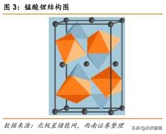 (3)锰酸锂:有尖晶石结构和层状结构,一般常用尖晶石结构的。理论容量148mAh/g,实际容量在100~120mAh/g之间,具有容量发挥较好、结构稳定、低温性能优越和成本低廉等特点。但是其晶体结构容易畸变,造成容量衰减,循环寿命短。主要应用于一些对安全性要求较高,成本要求高,但对能量密度和循环要求较低的市场。如小型通讯设备、充电宝、电动工具和电动自行车、特殊场景(如煤矿)。