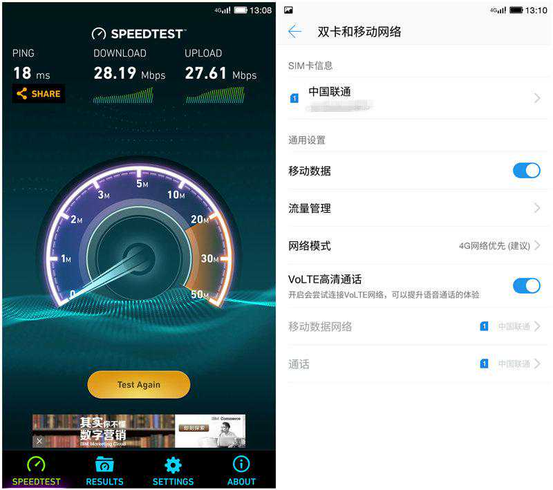 受益于高通在基带上的优势,乐Max2不仅实现了双卡双待全网通,VoLTE高清通话,并且接入了4G+网络,笔者实测下载速度达到28.19Mbps,相当于3.52MB每秒的下载速度,比普通4G手机快了将近一倍。