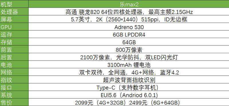 硬件上,乐Max2比前代乐Max拥有巨大的升级:旗舰骁龙820,2100万像素的镜头,5.7英寸2K显示屏,高配版更是进入“双六时代”(6GB内存+64GB存储),更有全球首发的Type-C数字耳机,超声波指纹识别,加上2099元的起售价成功勾起了笔者的兴趣。