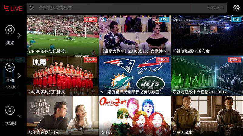 乐视UI的特色在于集成了自家直播资源,能实现九场比赛同时观看,更支持一场比赛的9路视角同时观看,中超联赛、国际冠军杯、亚洲杯等众多热门赛事IP资源全部上线。