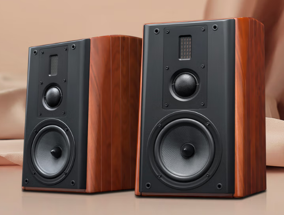 惠威M803A作为一款三分频立体声无源书架式音箱,外观采用流线型声学箱体设计,搭配昂贵实木制造的上下面板和胡桃木贴皮的侧面面板,整体看上去独特且极具魅力,摆放在客厅里还能起到一定的装饰作用,尽显尊贵奢华气质。