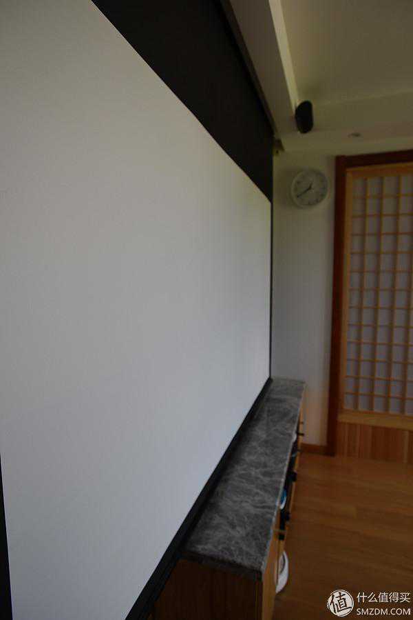 大家可以看下平整度还是不错的中间白幕部分几乎没有水波纹,就是两边黑边有一点点卷边现象不过完全不影响就是了。买幕布的时候一定要计算好自己的电视柜到房顶的高度,幕布槽的长度宽度,还有电动幕布需要电所以插座位置也要预留好,这些在卖家那都能得到相关数据一定要确认清楚,特别是幕布后面要挂电视机的还要确认电视机厚度。