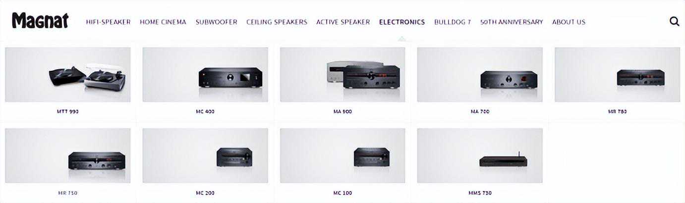 可别小瞧Magnat,它可是德国殿堂级音响品牌,凭借独一无二的声学技术设计、一丝不苟和竭尽全力的态度,以及无与伦比的精选组件,打造出兼顾音乐和家庭影院两大领域的多种产品。现在的Magnat,已是一个综合的音响品牌,旗下有着Hi-Fi音箱、家庭影院音箱、功放解码、无线音箱、耳机产品都齐全,产品线十分宽广。