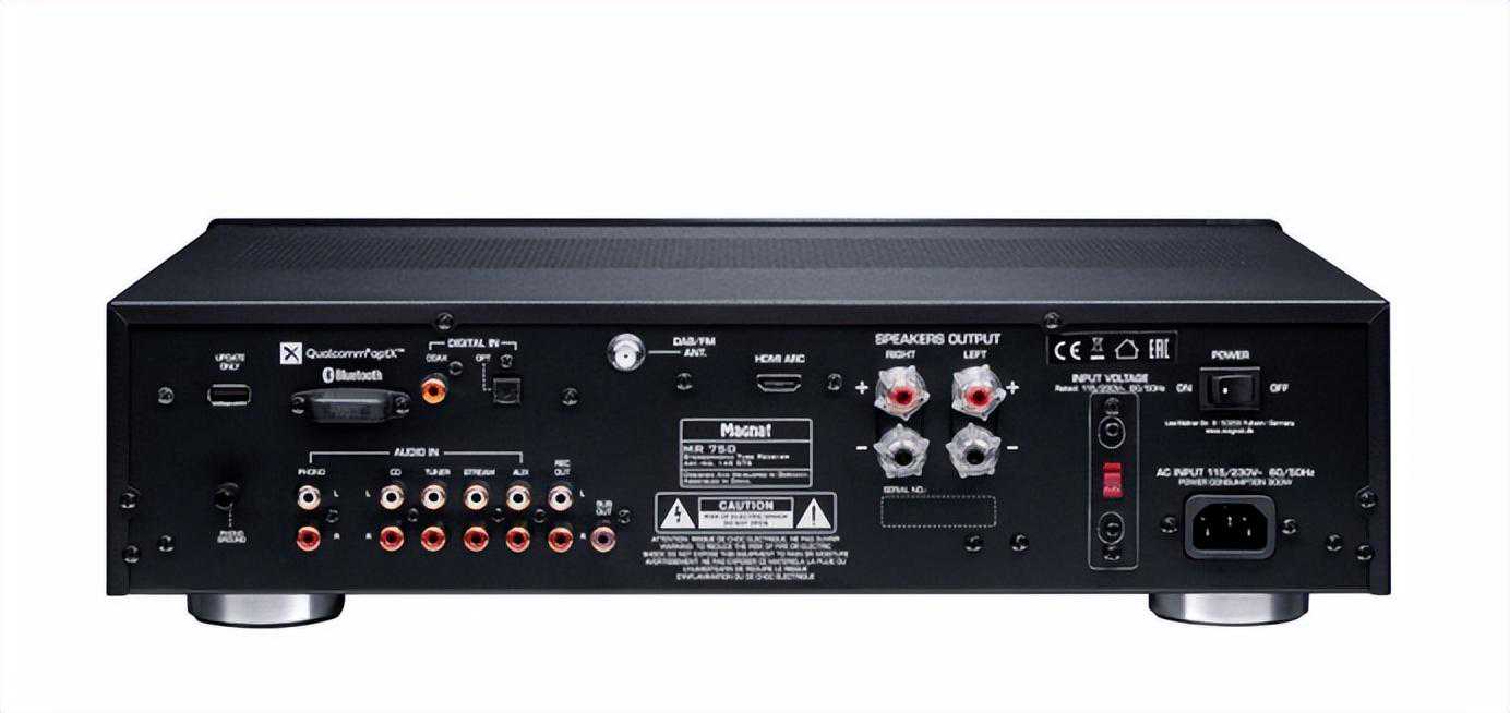同样是一款胆石结合的合并放大器,MR750与MR780有很多相似之处。MR750具备5个高级模拟输入、4个数字输入和一个MM唱头输入足以让您毫无问题地连接最广泛的系统。此外,还有采用aptX无损标准的蓝牙(Bluetooth®5.0),可从智能手机、平板电脑甚至电脑获得最佳声音。同样带有DAB+/FM功能的调谐器为用家提供了各种模拟和数字电台。此外,MR750还配备有低音炮输出,从构建家庭影院角度上看,MR750也是一个不错的选择。