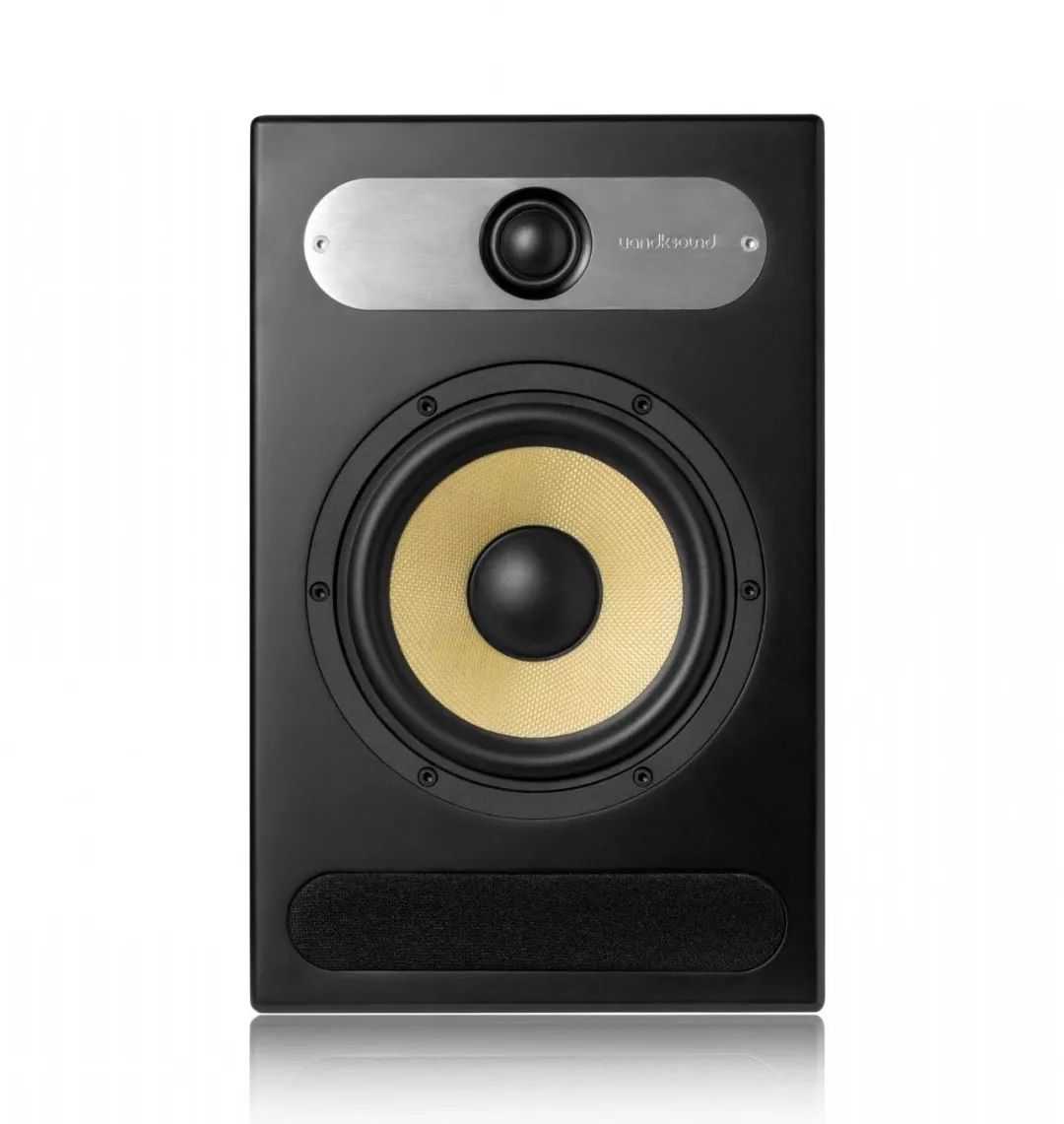 uandksound(英国之声)在声学上采用不规则栈板反射的设计,使声场更为宽广。传统的纸质锥盆已经有非常不错的表现力,而锥盆在设计的时候加入一些高传导的材料,使得其钢性更佳,传播速度更快。T系列的中音单元亦采用防弹纤维盘,使得人声更加饱满、通透、细致。