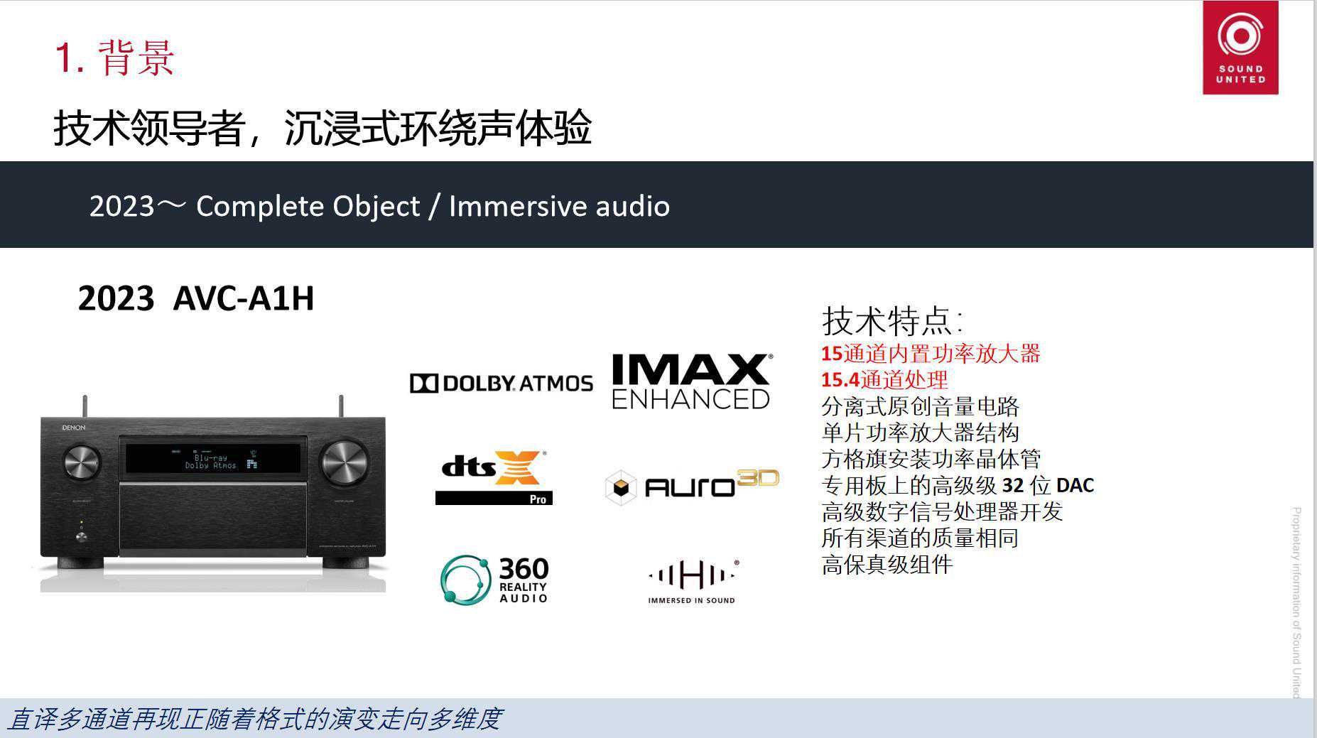 虽然2016年天龙就有了第一代杜比全景声功放,但直到2023年的AVC-A1H才是第一台沉浸式环绕声的A1。