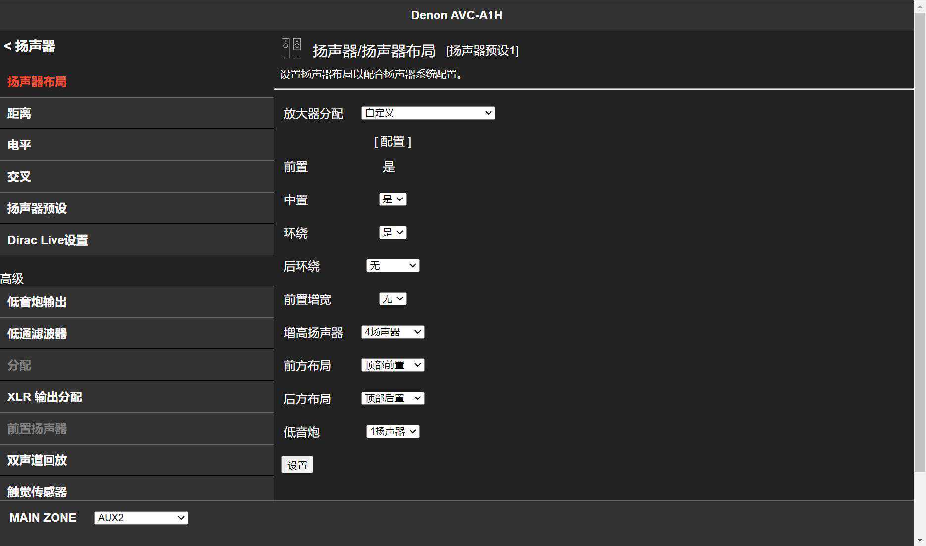 天龙AVC-A1H试用本来我应该详细的讲一讲这部分,但实际用下来,不管是从PC端设置产品、还是功放连接投影机的菜单,和我上一期讲的马兰士Cinema50除了logo不一样,其他都差不多。