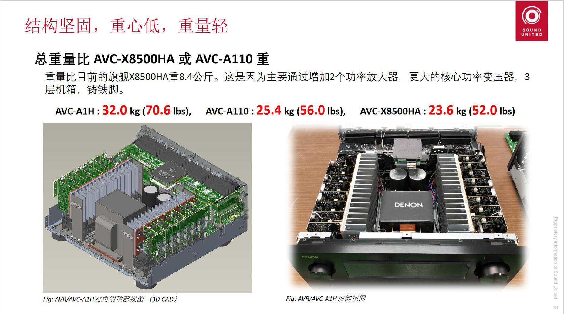 当这一大堆结构优化完之后,重量也就从A110和25.6kg长到了32kg。想想,已经有15年没看到过超过60斤的合并式AV功放了。而上一台超过60斤的功放,就是上一代A1HD……