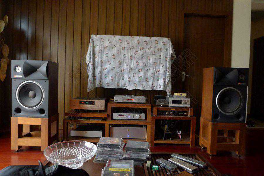 这次拜访的是群里的一个烧友刀总,它是一位非常有品位的软件收藏家和发烧友,在上海与刀总交流是一件很惬意的事情,把自己的发烧经验一一与我介绍,同时告诉我把玩JBL的宝贵经验。JBL的大号角灵敏度虽然高,易驱动,但要玩好它绝非一日之功,刀总以金嗓子DP500CD机搭配大simaudio前后级驱动JBL4425MKII,非常的全面、平衡,音色很正,播放古典音乐、流行音乐均是一流表现。