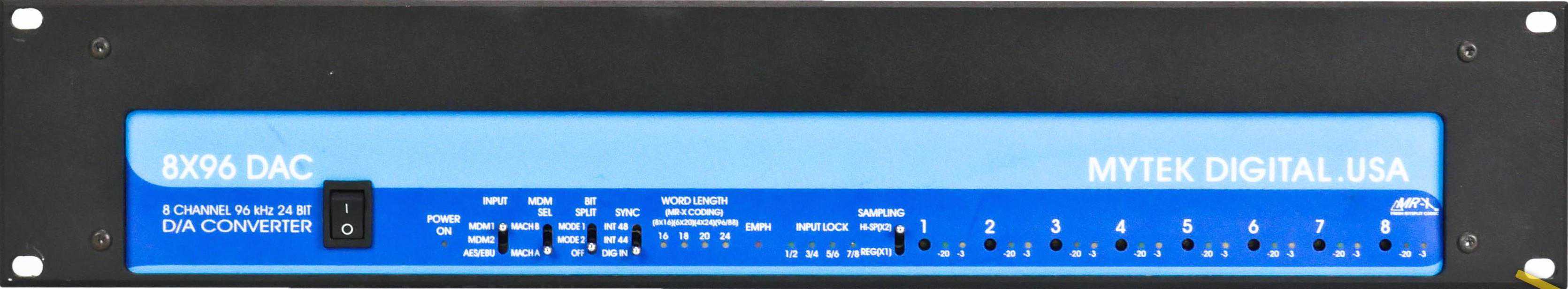 8X96系列8通道24位,96kHzDAC当系统前面所有数字信号到最后输出的时候,一定要一台顶级的解码器完美的还原模拟信号输出至功放。多通道顶级解码器的选择其实很多,包括有ADA8XR,LAVRYBLUE,等等,但总设计师Gaho最后选择了独爱的MYTEKDAC8*96,这是Gaho的其中一道杀手锏,他说独爱DAC8X96因为只有它才能打出最干净有力的超低频,酒吧最需要这样音色,绝无一点拖泥带水,8X96不是最有感情的声音,但它一定是最酷帅的声音,我们今天在酒吧跳舞要酷,不是在家听交响乐就暂且放下感情了。8X96系列提供非常高性能的24位96kHz转换,可与最昂贵的母带转换器相媲美。