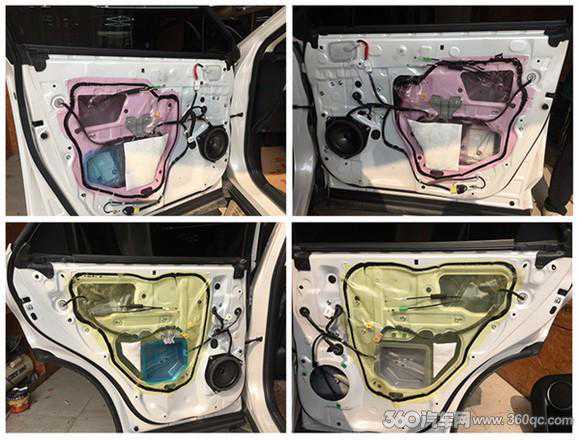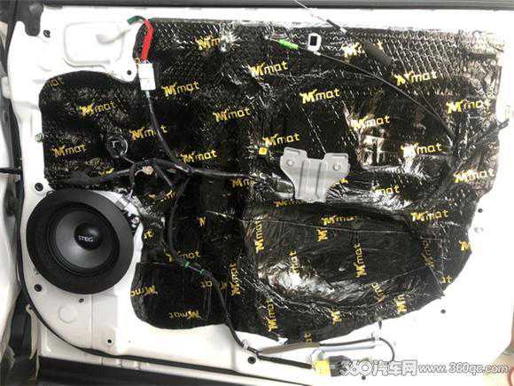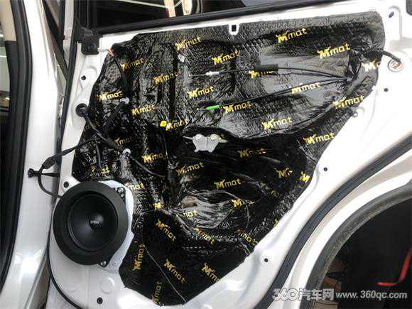 在音响改装之前,对汽车门板的隔音非常重要,因为门板是安装喇叭的地方,一个良好的门板隔音环境可以将喇叭得到更好地发挥。改装师将门板外壳拆卸下来,可以看到内部隔音措施非常简陋,只有一层薄膜,将其清理干净后,使用大麦隔音材料将门板内部进行第一层减震处理,大麦隔音材料含有4层结构,并使用环保材质,对器材和人体都没有伤害,经过减震处理后,可以有效减少门板内部钣金共振。在第二层使用大麦减震垫进行隔音密封,将门板打造成密闭的箱体结构,减少风噪和胎噪进入。