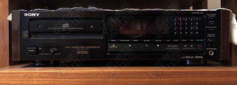 索尼557ESD是索尼公司早期顶端CD产品,该机器的技术和音质可以和索尼X7ESD不分上下,557ESD整机用料极其奢华,KSS-190A磁悬浮顶级光头,双PCM-64P的D\A转换芯片,全频解析力好、平衡,音乐背景异常干净,高音相当细腻,中频密度高而且甜美自然,低频控制力一流。带光纤和同轴输出,可以当转盘用,两组模拟信号输出(一组遥控音量)。