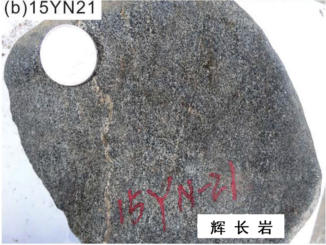 辉长岩是一种基性侵入岩,其中“基性”代表着这类岩石成分种SiO2含量较少,一般为45wt%~52wt%。由于SiO2含量较少,岩石主要呈现灰黑色。与辉长岩伴生的矿物有铁、钛、铜、镍、磷等。