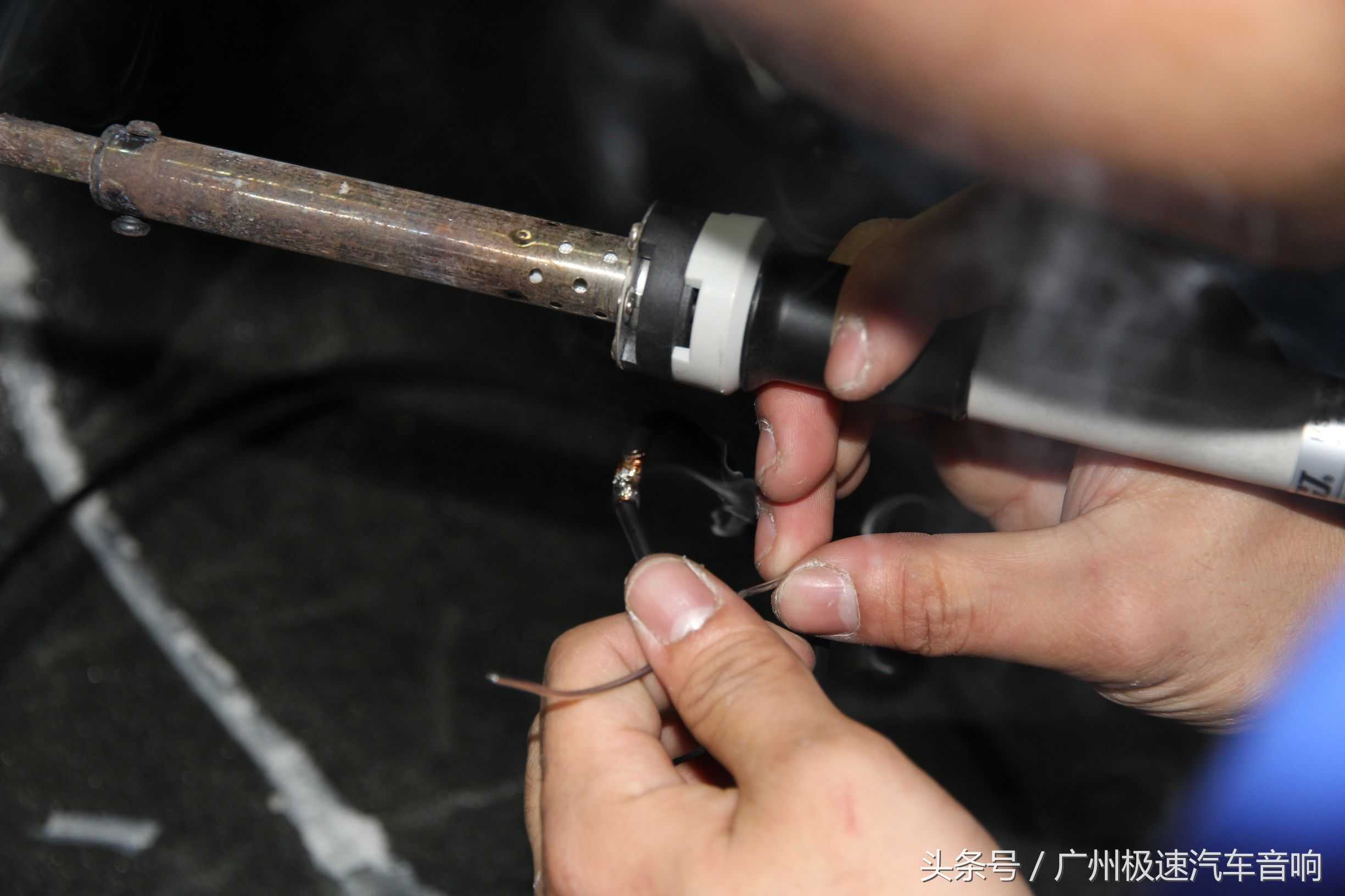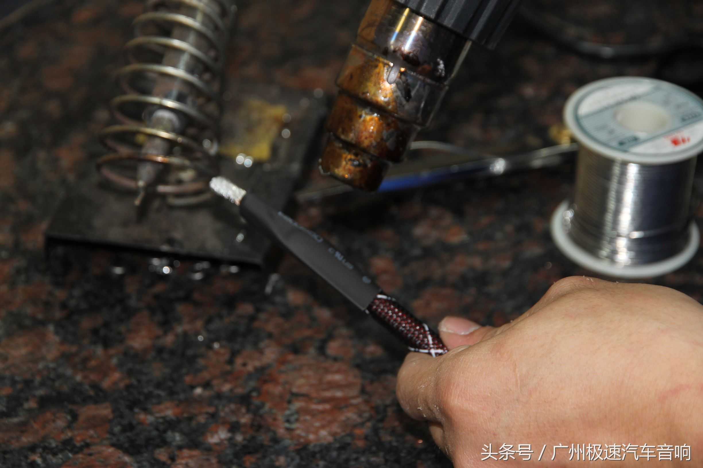 安装喇叭前需焊线、套上热缩管等工作