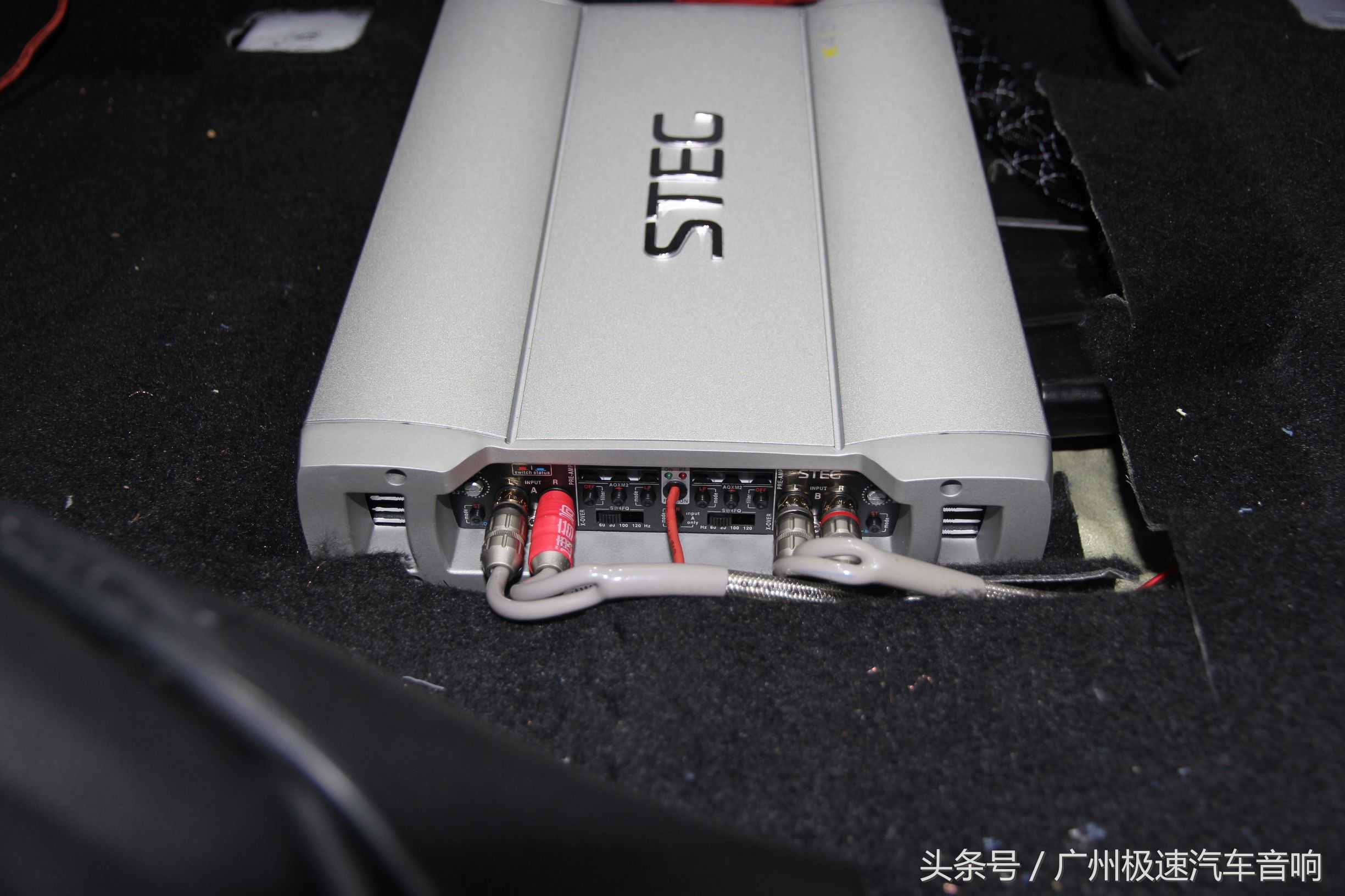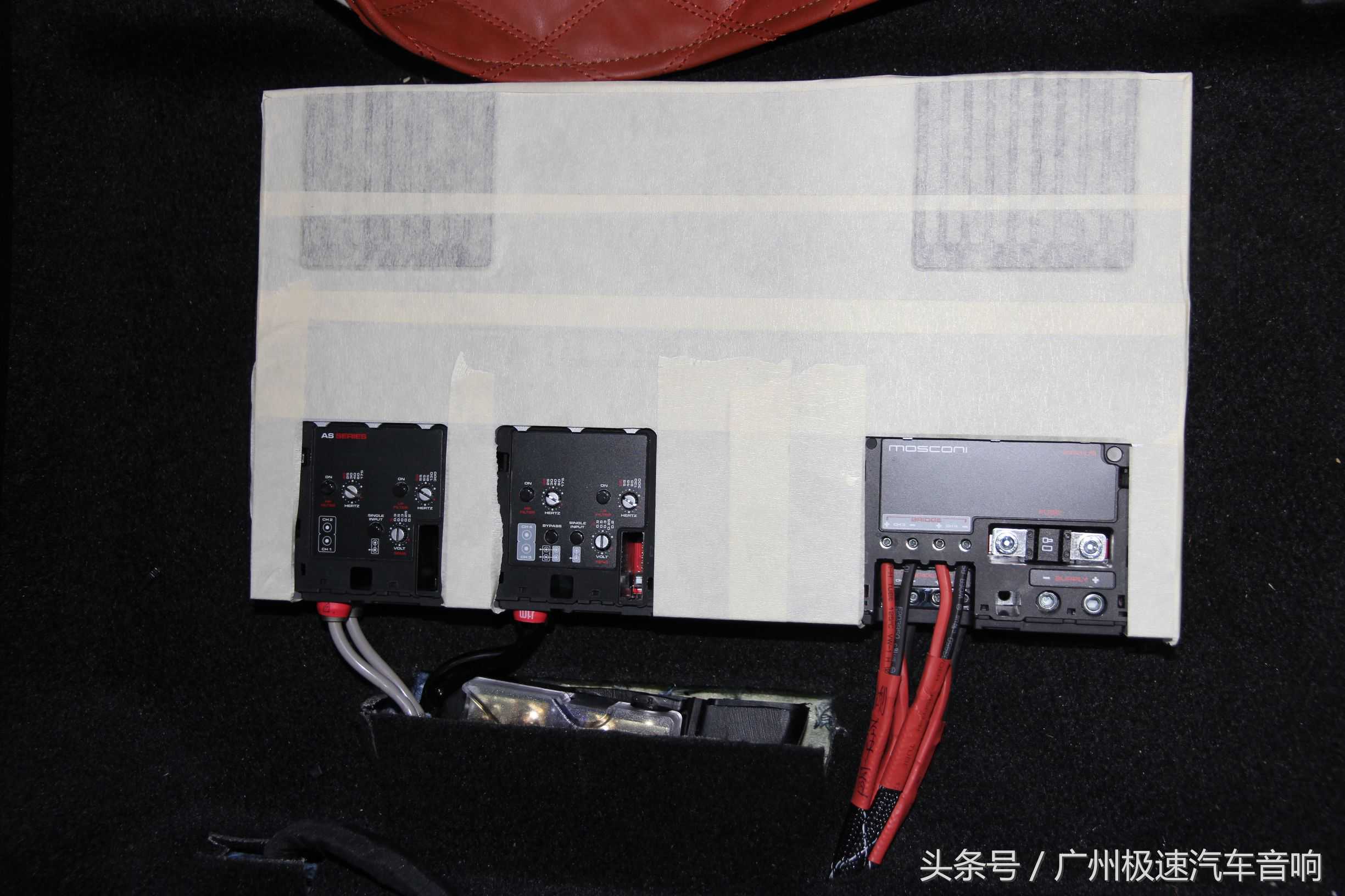 MOSCONI功放安装于座椅底(HELIXDSP车主装上试了一段时间,个人觉得更喜欢阿尔派DSP,所以更换了DSP)