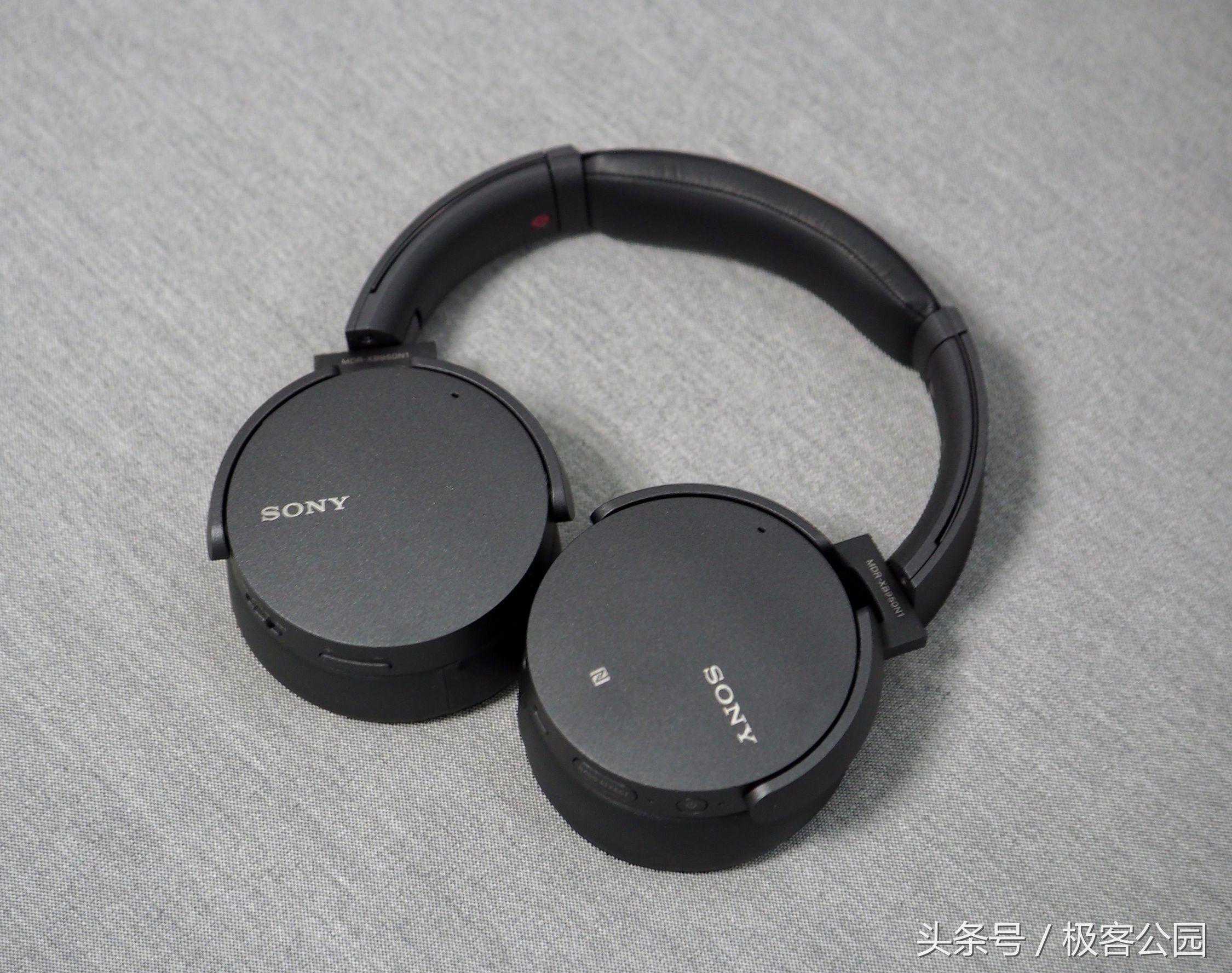外观、佩戴和操作拿到索尼MDR-XB950N1的第一感觉是大,把它和BoseQC35摆在一起,MDR-XB950N1明显要大上一圈。