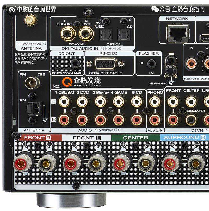 SR5012:7组音箱接线柱、7声道直接驱动、7.1声道前级输出、HDMI接口8进2出