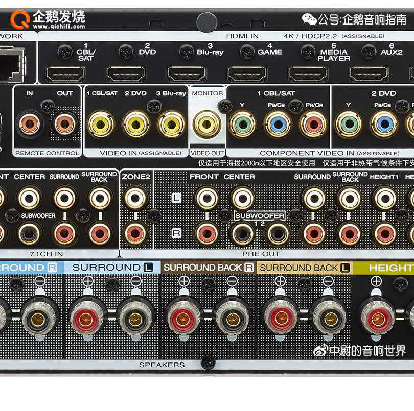 SR6012:11组音箱接线柱、9声道直接驱动、11.2声道前级输出、HDMI接口8进3出