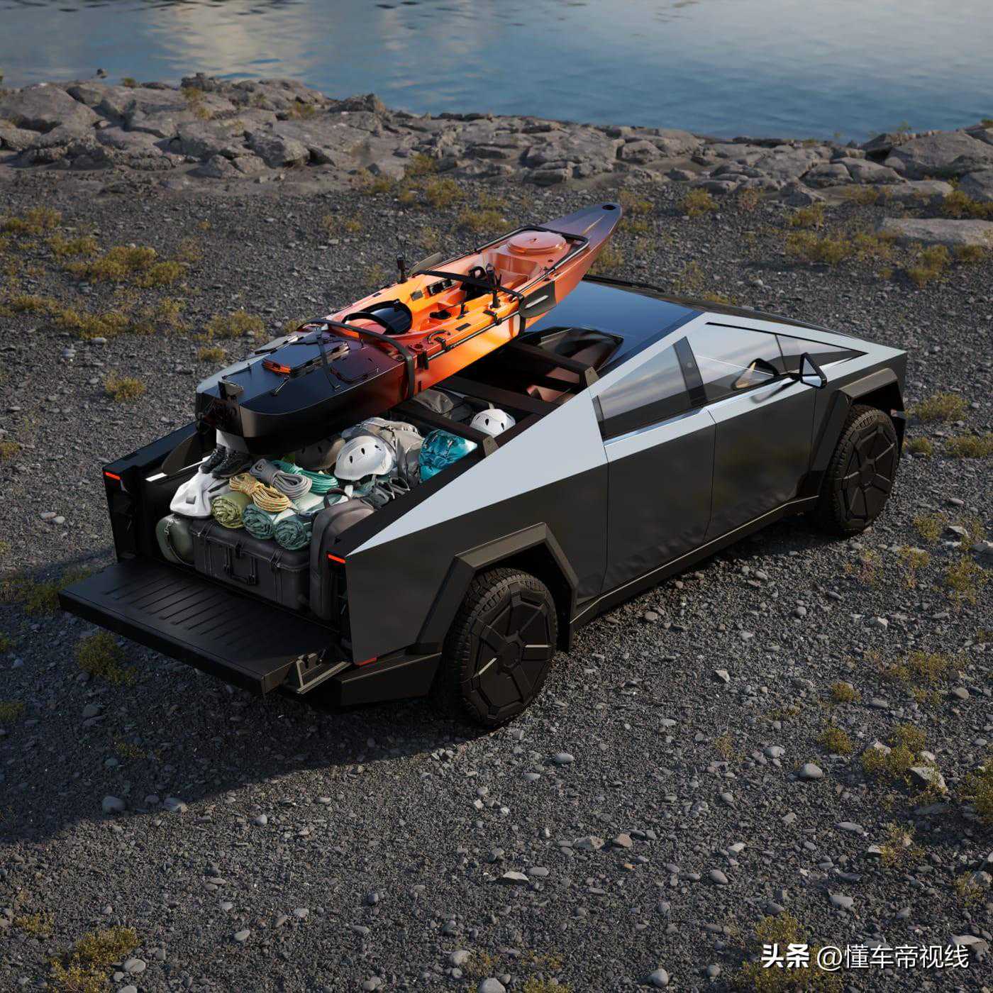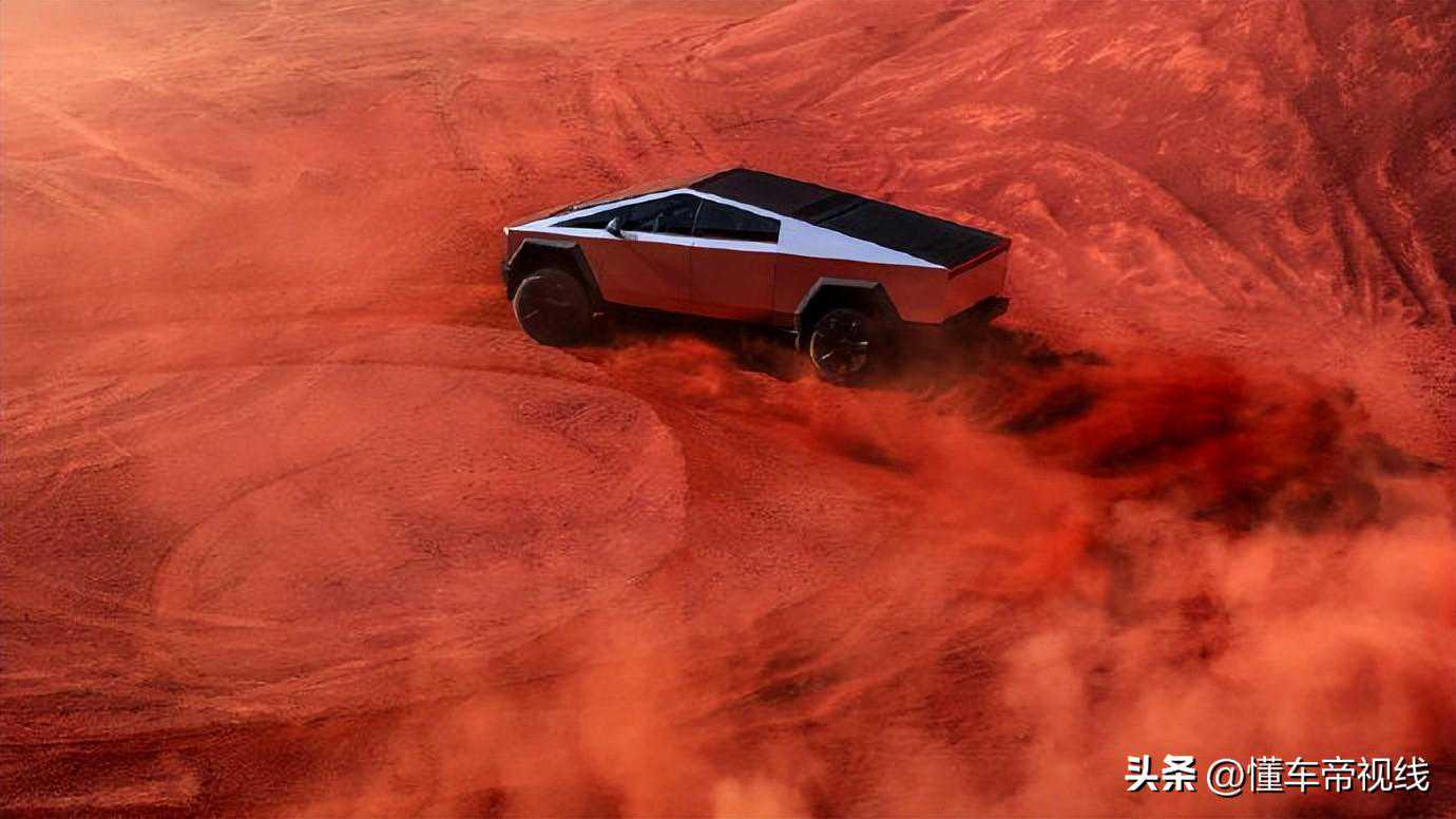 另外,Cybertruck还配备了后轮转向、自适应空气悬架系统,其中空气悬架调节范围为305毫米,离地间隙432毫米,接近角35度,离去角28度,可以提供较为出色的车辆通过性。
