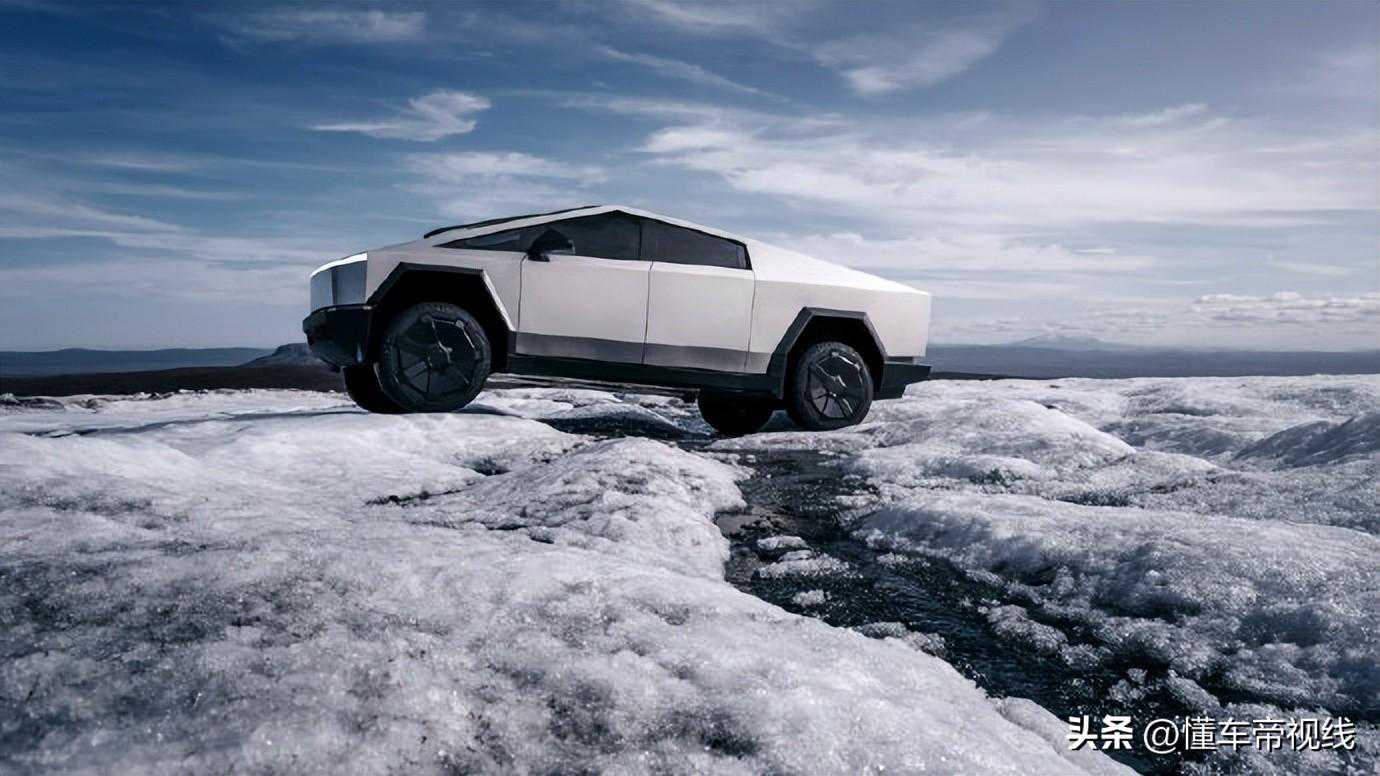 Cybertruck采用不锈钢车身,并且不会进行任何涂装,车身玻璃可以抵抗时速70英里(约合112公里/小时)的棒球或4级冰雹的冲击。车头配备贯穿式灯带,前包围上方配备了转向灯和雾灯,前风挡上还配备了尺寸巨大的雨刷器。