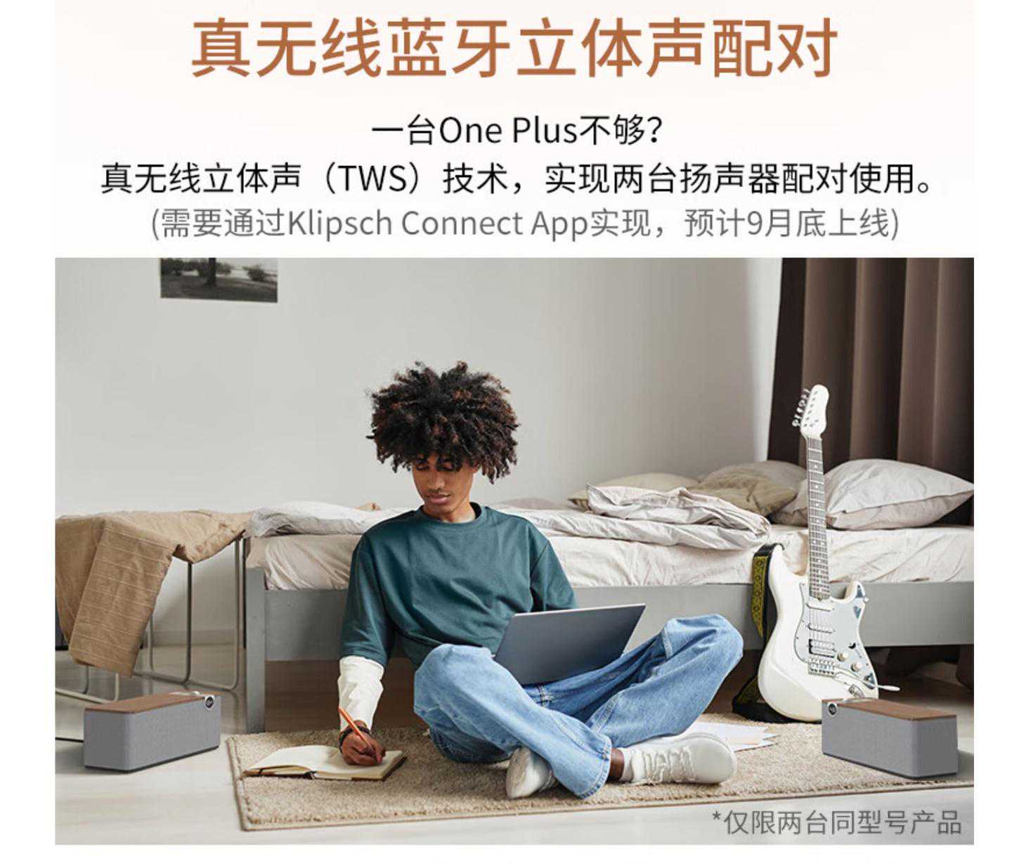 杰士TheOnePlus音箱有午夜黑色和晚秋胡桃木色两种配色可选,内置3个D类功放组建2.1立体声系统,可通过真无线立体声技术实现两台扬声器配对使用。