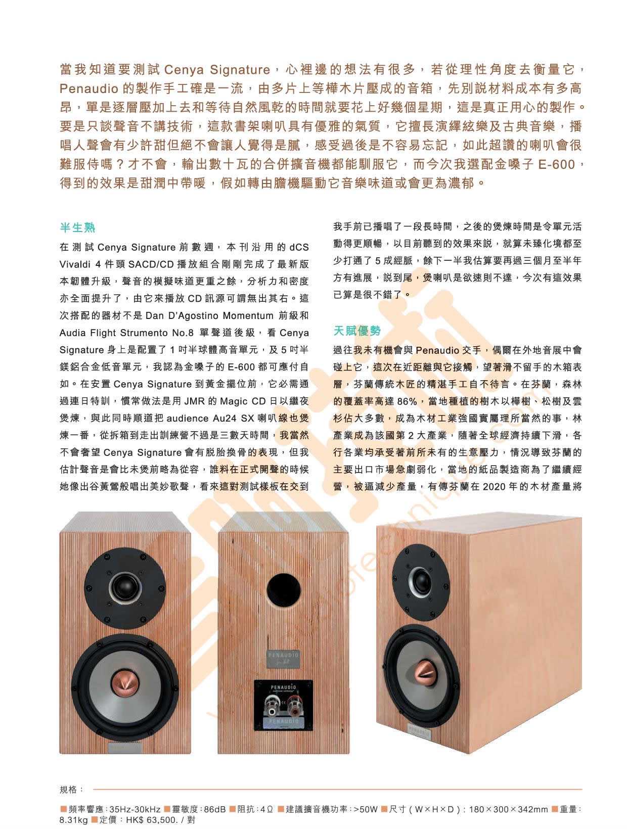 我知道要测CenyaSignature,心里面的想法有很多,若理性角度去衡量它,Penaudio的制作手工确实一流,由多片上等桦木片压成的音箱,先别说材料成本有多高昂,单是逐层压加上去和等待自然风干的时间就要花上好个星期,是真正用心的制作。