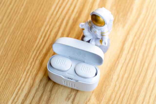 充电盒正面印有JBL标志,盒子的整体线条非常圆润,但表面被切出三道锐利线条,握感与观感都相当出色,体积小巧,可被轻易放在裤袋中。在充电盒的盒盖边缘处,设计了一个凹槽,电量指示灯内嵌凹槽纹理之中,开闭盒盖和取放耳机时手感顺手。