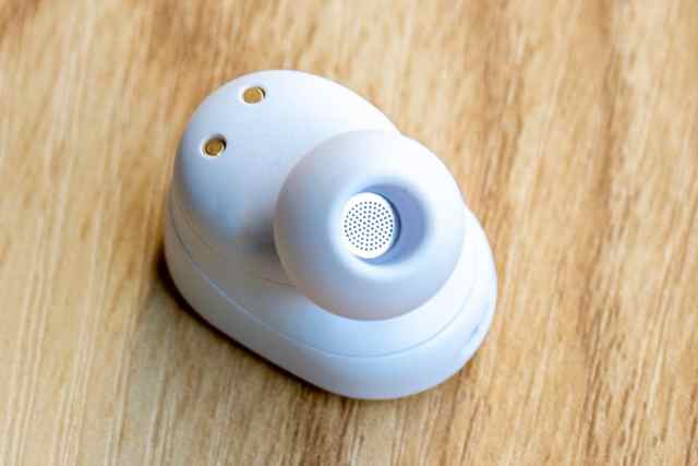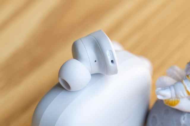 回到耳机本体。JBLTUNE130NC耳机本体采用了降噪耳机中流行的“豆式”流派设计,和充电盒相似,耳机本体为磨砂质感,外形圆润,但在外显面处做出了一个线条分明的切面,圆润与棱角相结合的设计极为独特。佩戴时,从他人视角看,耳机仿佛挂在耳边的“胶囊”,很有“街头范”。