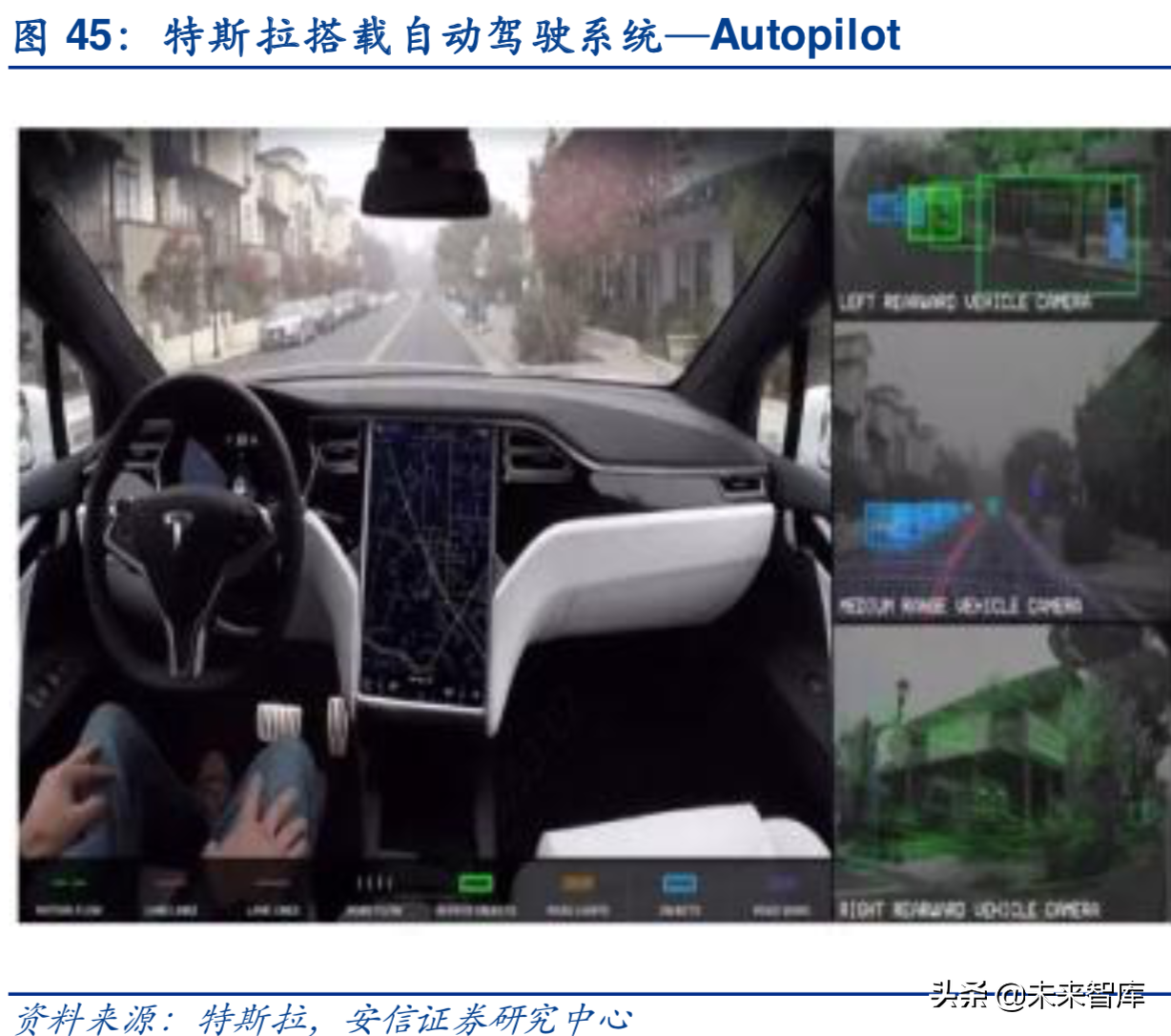 以特斯拉为例,看智能汽车的进化方向。从2012年首款车型ModelS横空出世以来,特斯拉一直是汽车人心中“科技感”最强的车厂之一,其标志性的自动驾驶系统“Autopilot”是全球商业化自动驾驶技术的标杆、中控大屏车机以及OTA(在线更新)的设计带来的出众的网联化体验也成为众多车厂效仿的标准。我们以特斯拉为例,解读“未来”汽车的智能化新方向。