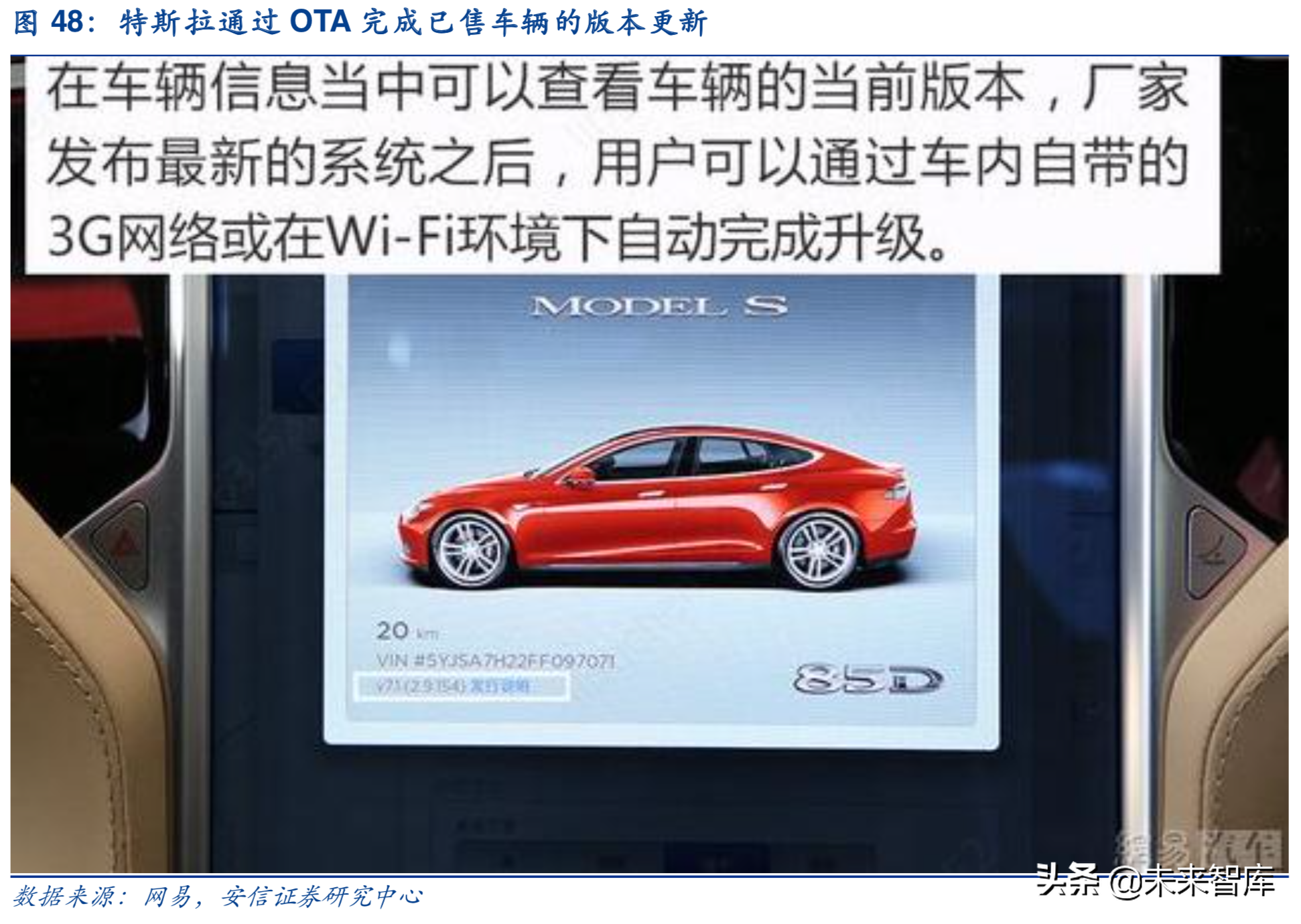 网联化创新方向——OTA技术让汽车具备持续迭代进化的能力。特斯拉的远程OTA技术让汽车终端可以持续保持进化。如果一个设备没有自身升级迭代的能力,我们不认为它是真正意义上的智能设备,而目前绝大部分的汽车不具备售后自动更新的能力。特斯拉是目前为止唯一可以实现整车OTA(Over-the-AirTechnolog,远程升级技术)的车厂。通过OTA联网,特斯拉可以让每台车在生命周期内都像智能手机一样可以完成系统更新、增加新功能和提升性能。值得注意的是,特斯拉的OTA技术不仅局限于Infotainmen(t娱乐系统)的软件更新,更是可以直接实现安全及车辆操控上的更新,比如Autopilot系统版本更新、刹车性能提升等。我们认为,“未来”汽车的一大重要趋势即“软件定义”汽车,通过软件的迭代更新,保持持续进化能力,将成为“未来”汽车的标配。