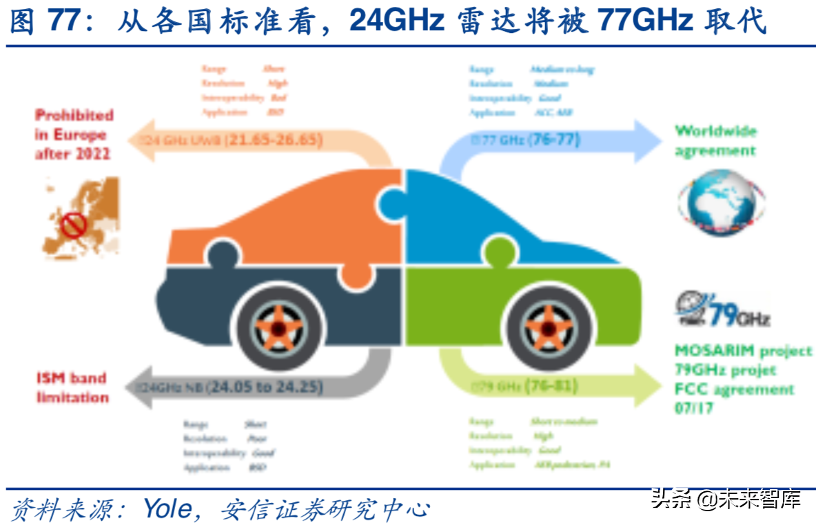 3.4.2.毫米波雷达市场复合增速25%,逐步向77GHz统一