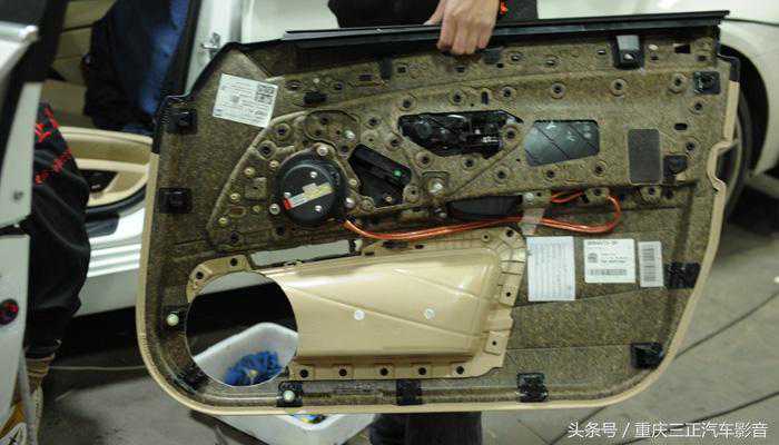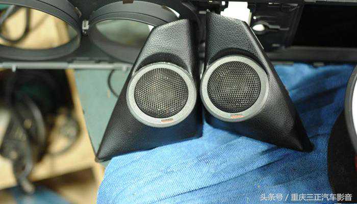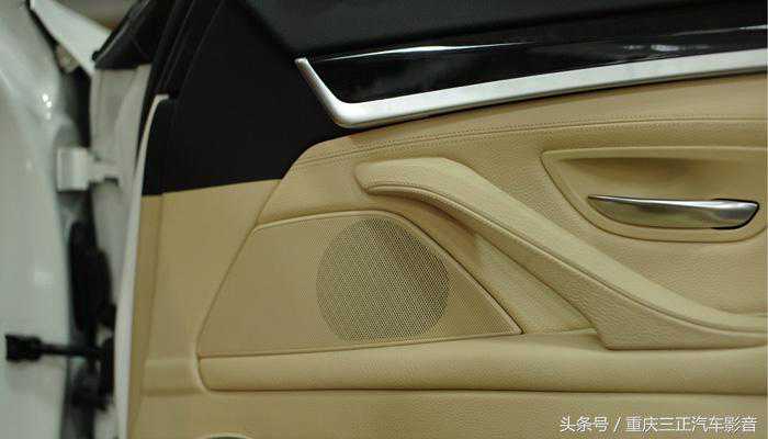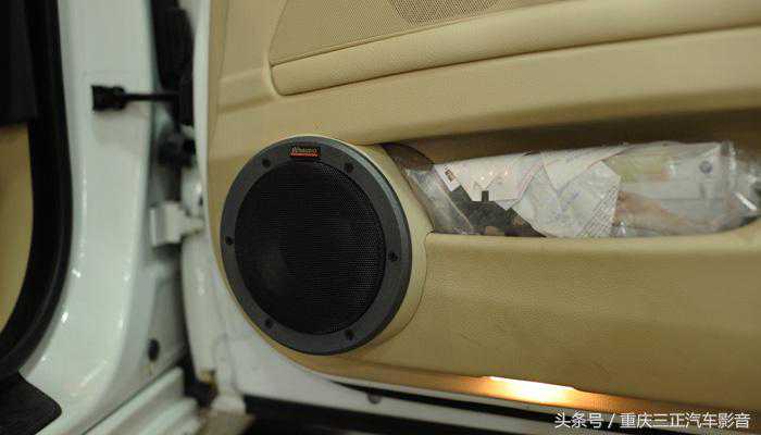 中音安装在原车高音的位置〔宝马523原车虽没有高音喇叭,但还是留有高音安装位〕。中音加装完成: