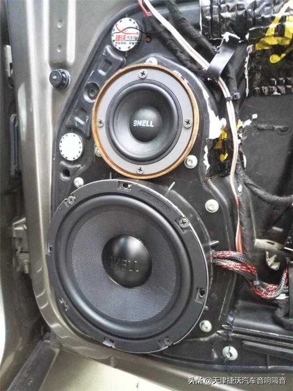 大众CC三分频原装位无损安装,霸克PX650中低音喇叭+RK3中音喇叭。