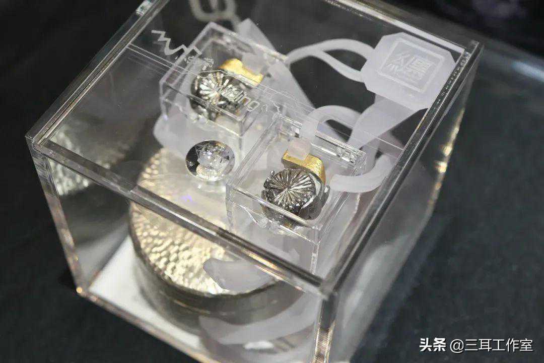 知名资深设计师@牙仔的个人品牌Widing延续其独一无二的产品思路,旗舰型号“鉴”和舞台监听利器“锃”是之前有亮相的,而首次线下展出的“缠”绝对是展会中最吸睛的作品之一,更有与非物质文化遗产传承人吴炜全先生合作的特别金箔款,采用一般人都看不懂的金属加工工艺和半开放式的平板单元声学结构。如果下次Widing的耳塞出现在博物馆里,三耳君相信也不会有人觉得奇怪。