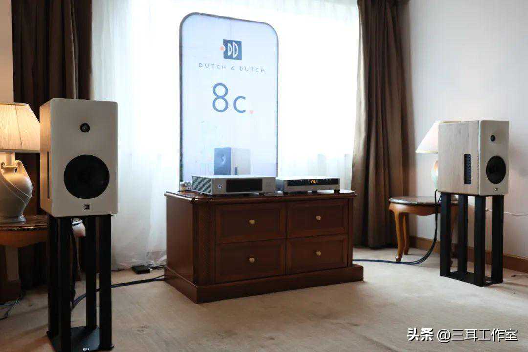 5楼523房是本次展会新增加的“隐藏展房”,展示的是MaxDigital公司新代理的荷兰DutchDutch有源数字音响系统。值得留意的是,在两个音箱中间的Aurer和Bekerley音源都并没有实际连接,这对DutchDutch8C音箱内置网桥,直接通过ROONCORE接入并管理,展现了强悍的声音表现。虽然系统组成简单,但实际上强大的功能均内含在音箱之中,包括了内置的DAC、放大器和数字音频串流式传输器,还有DSP空间校正功能,这次的展示也是经过了DSP空间校正。