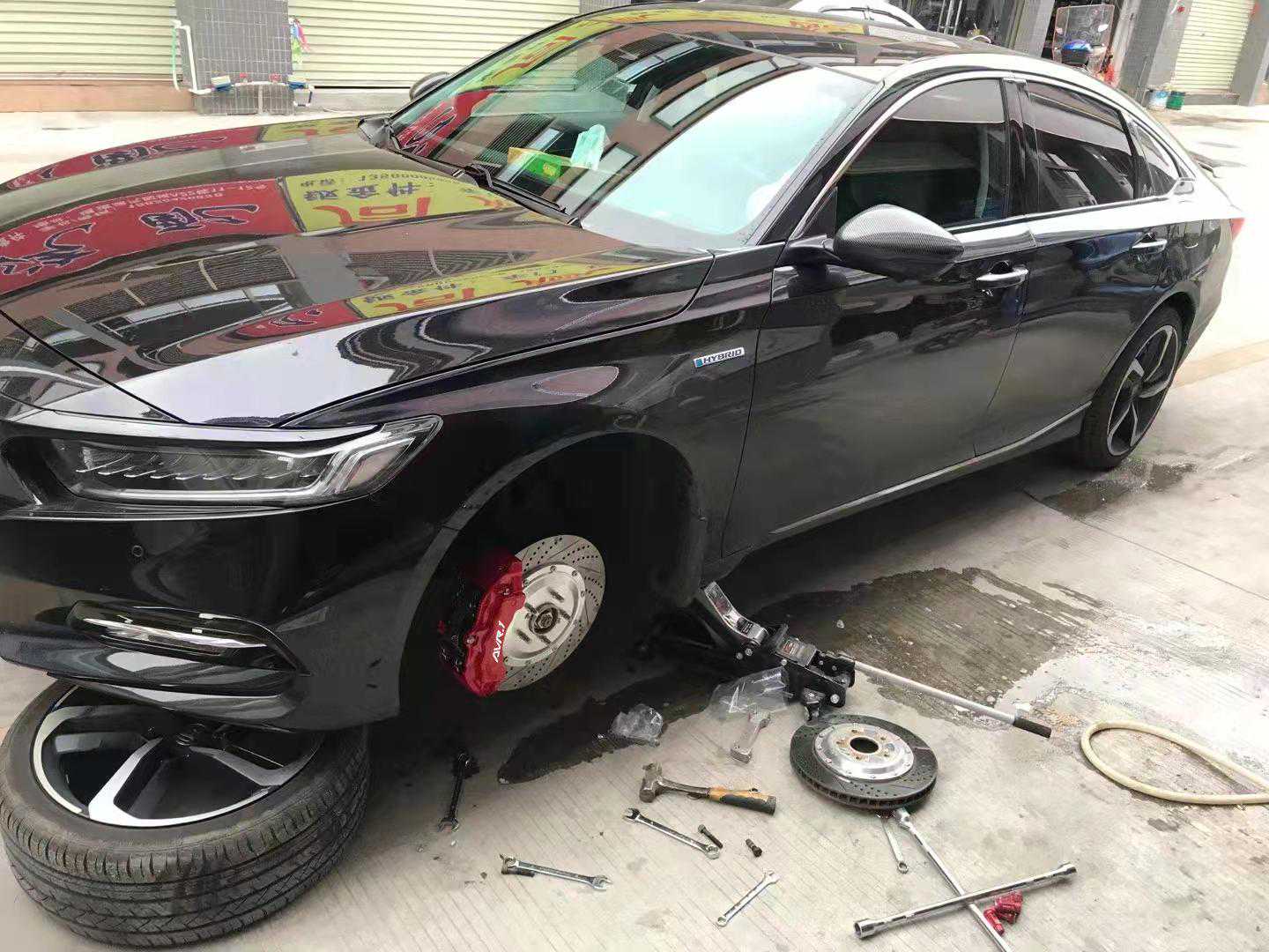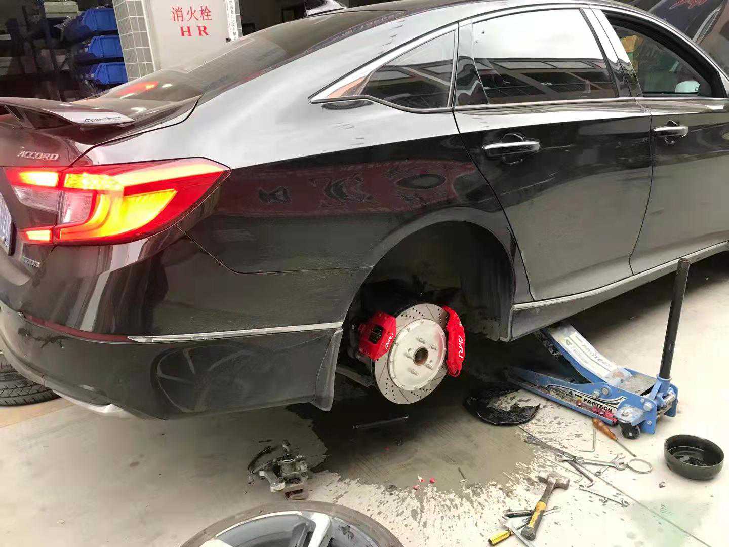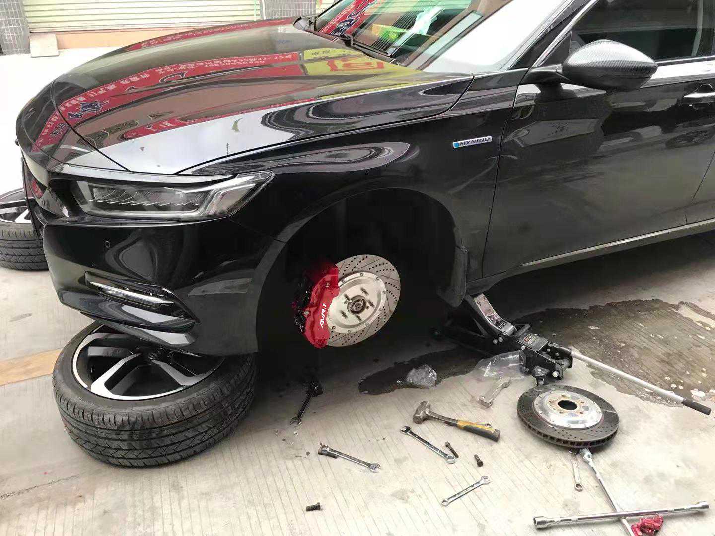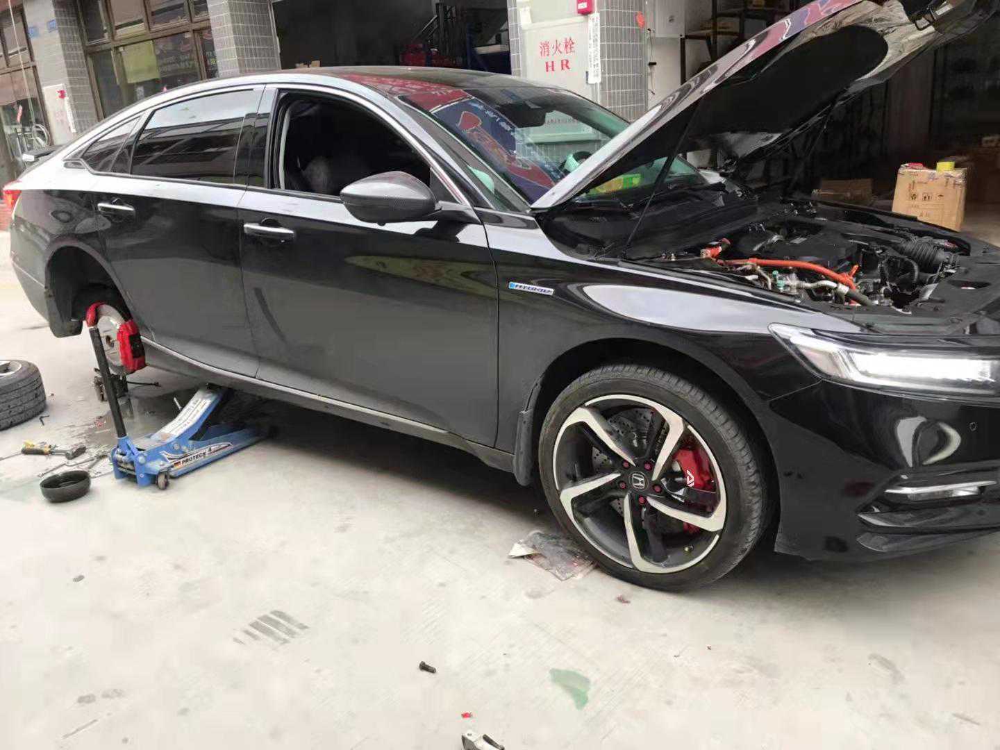 俗话说得得好,雅阁不改,不如推下海,相信大家平时也见过比较多的改装雅阁,不得不惊叹,雅阁这款车,简直就是为改装而生!今天这个雅阁车主也是一位改装达人,品位确实也高,过来先把全车最重要的部位改装升级一下!给车主的方案是前轮的AV18大六活塞卡钳,后轮:F4B四活塞+电机,前后轮碟盘:355*32mm孔线碟。下面我们来看一下改装过程